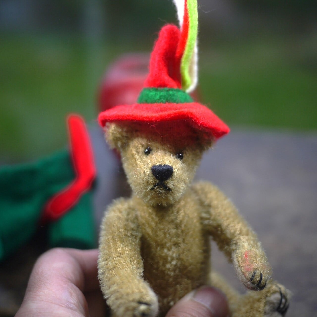 緑の上着を着たベア ドイツ ミニテディベア ドイツ