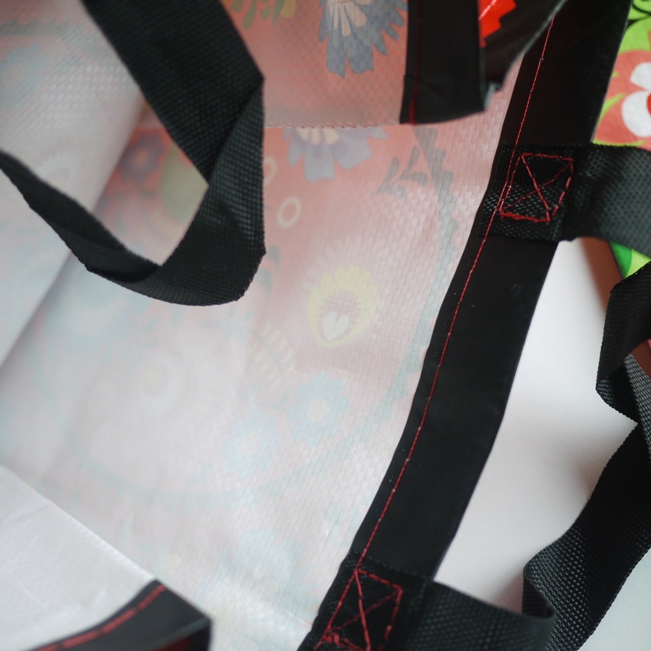 花柄がいっぱいのプリントバッグです。