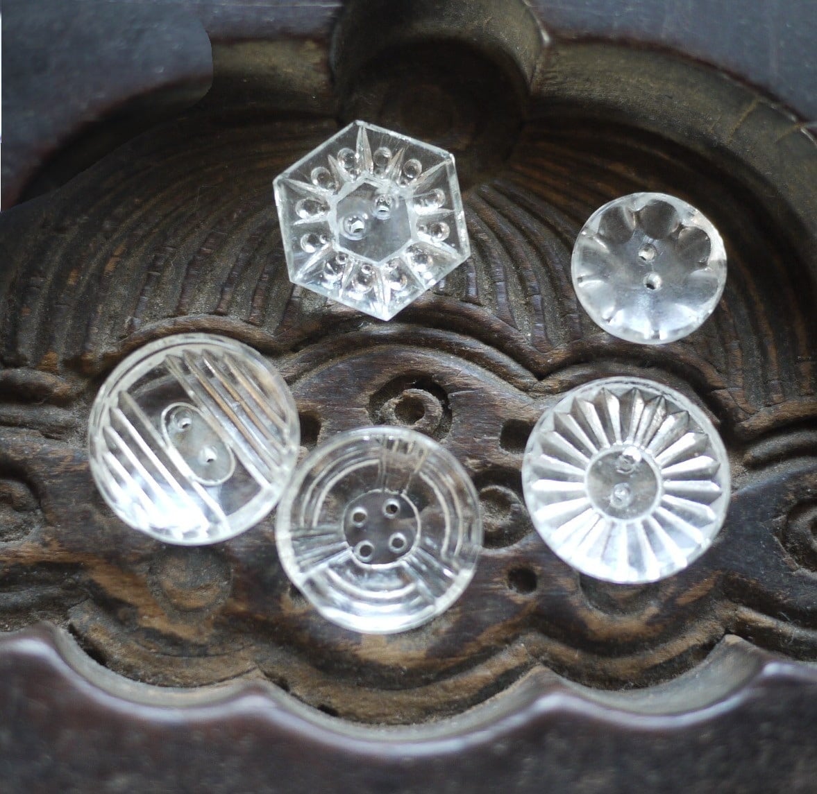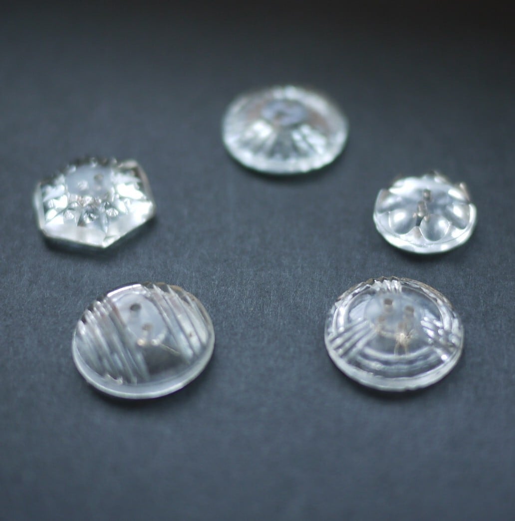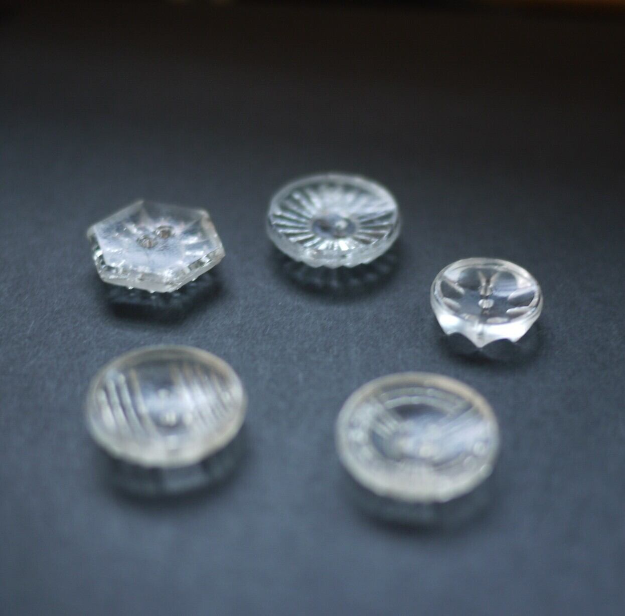 古いガラスボタン5PsetC アンティーク チェコガラス クリアガラス