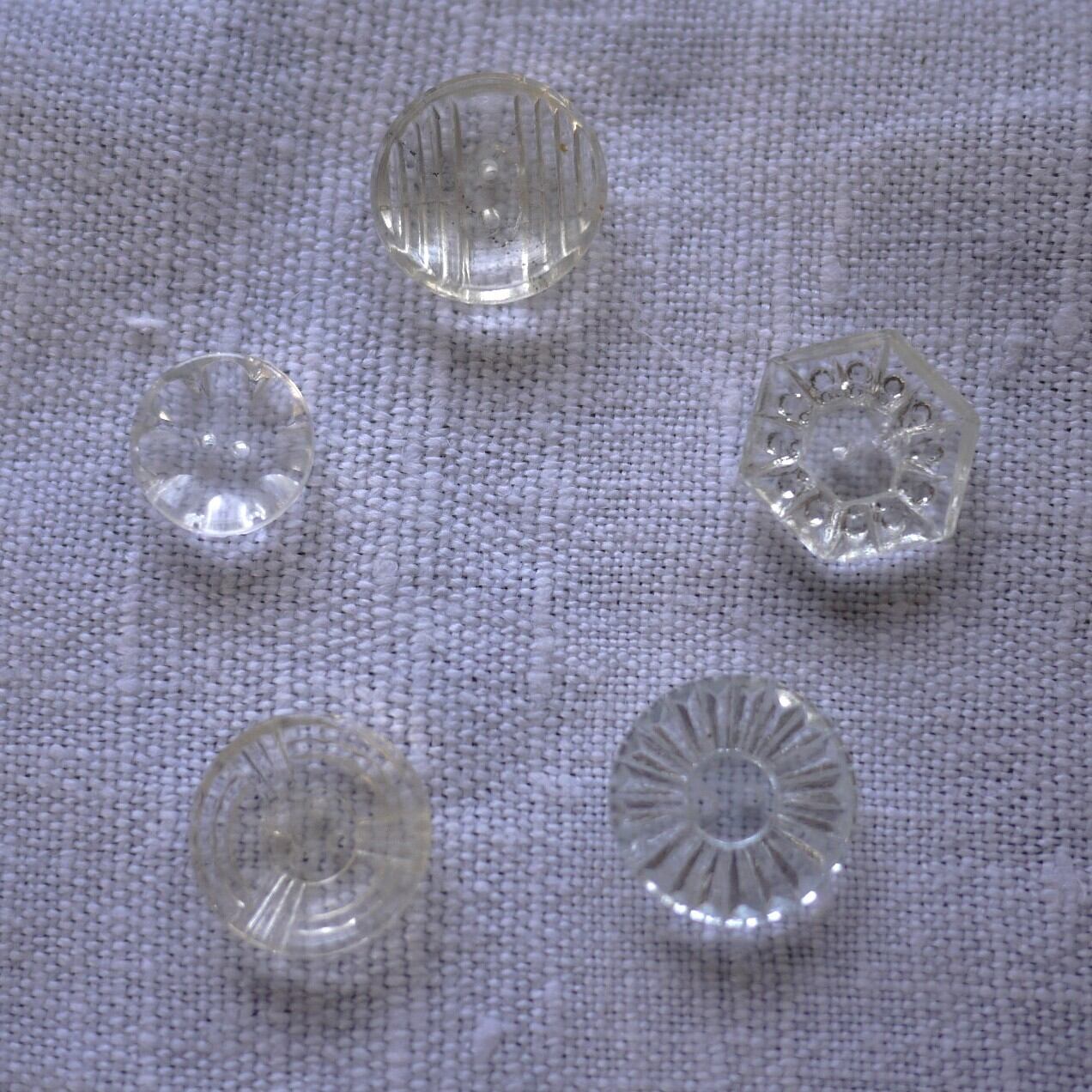 [古いガラスボタン5PsetC アンティーク チェコガラス クリアガラス]