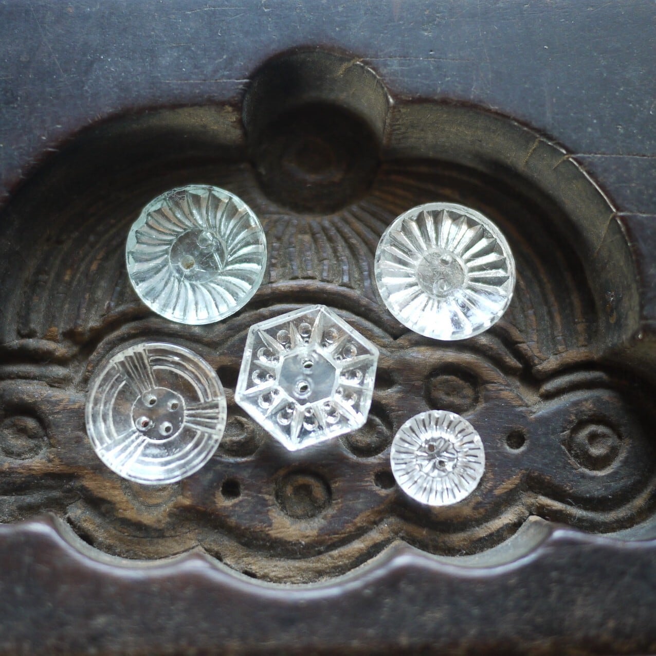 古いガラスボタン5PsetE アンティーク チェコガラス クリアガラス