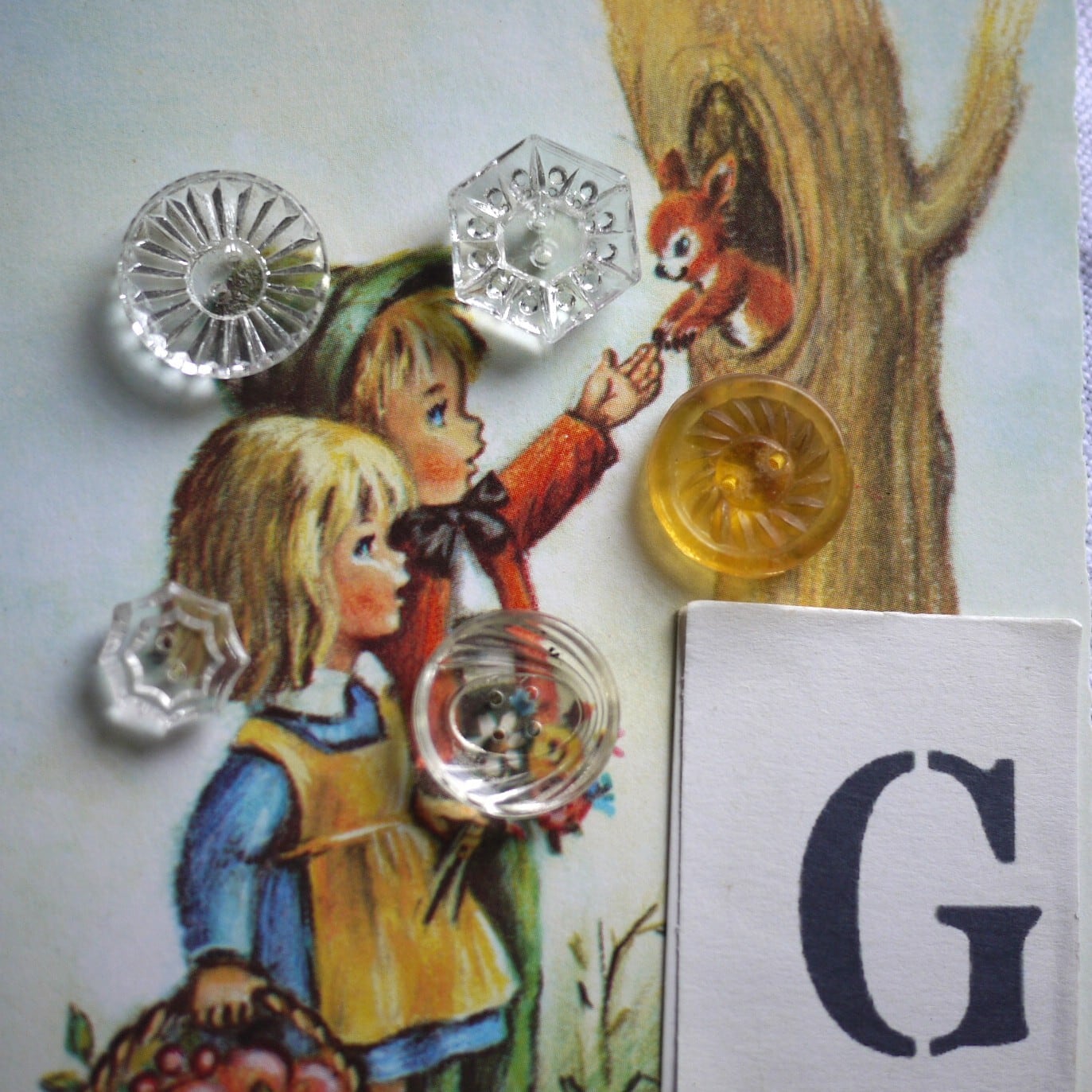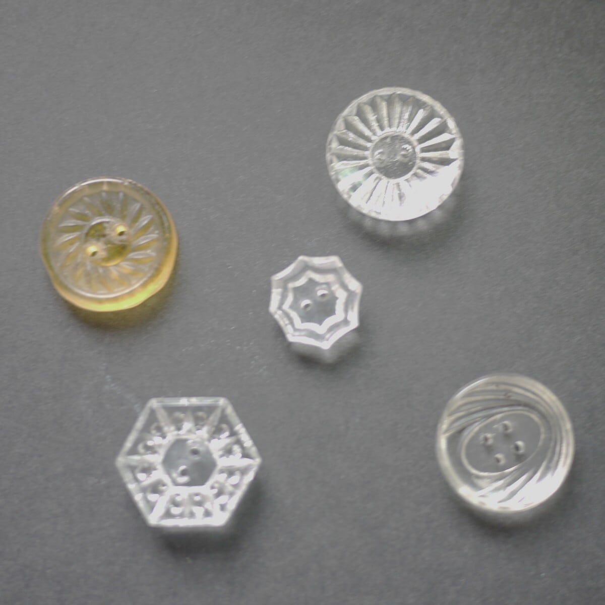 [古いガラスボタン5PsetG アンティーク チェコガラス クリアガラス]