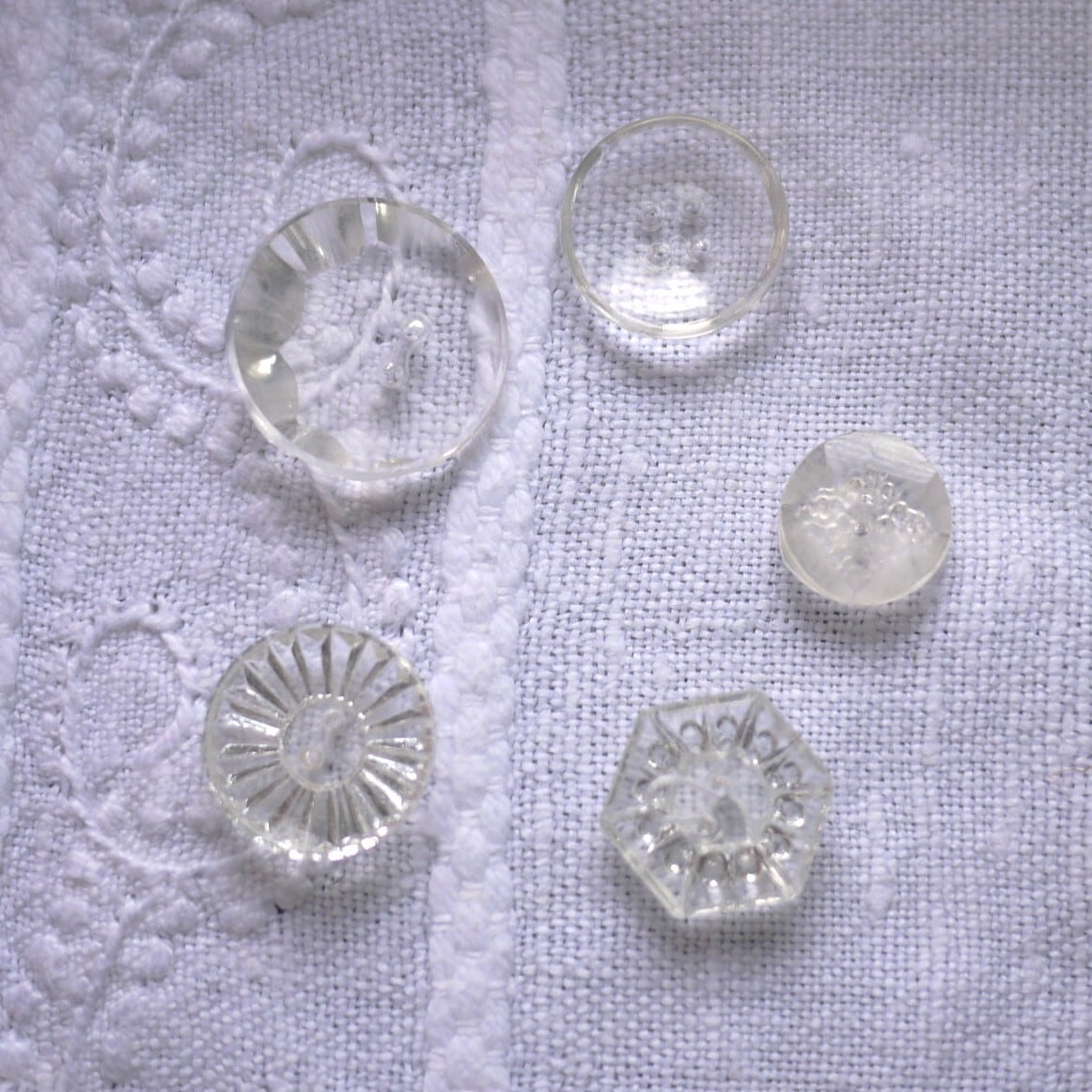 古いガラスボタン5PsetI アンティーク チェコガラス クリアガラス