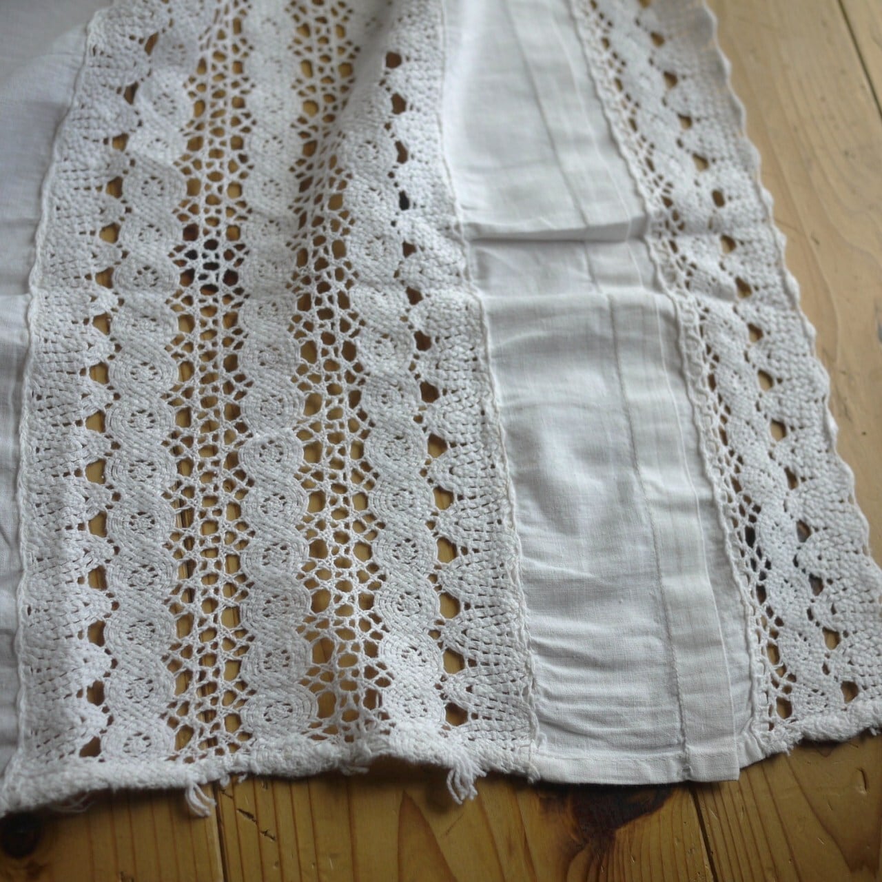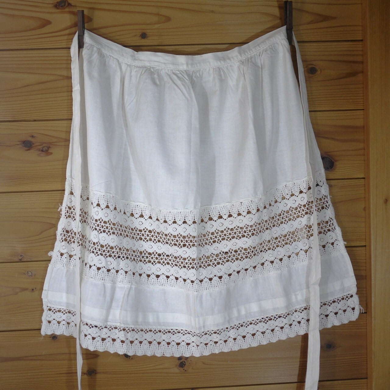 白いサロンエプロン 幅広レース ドイツヴィンテージ
