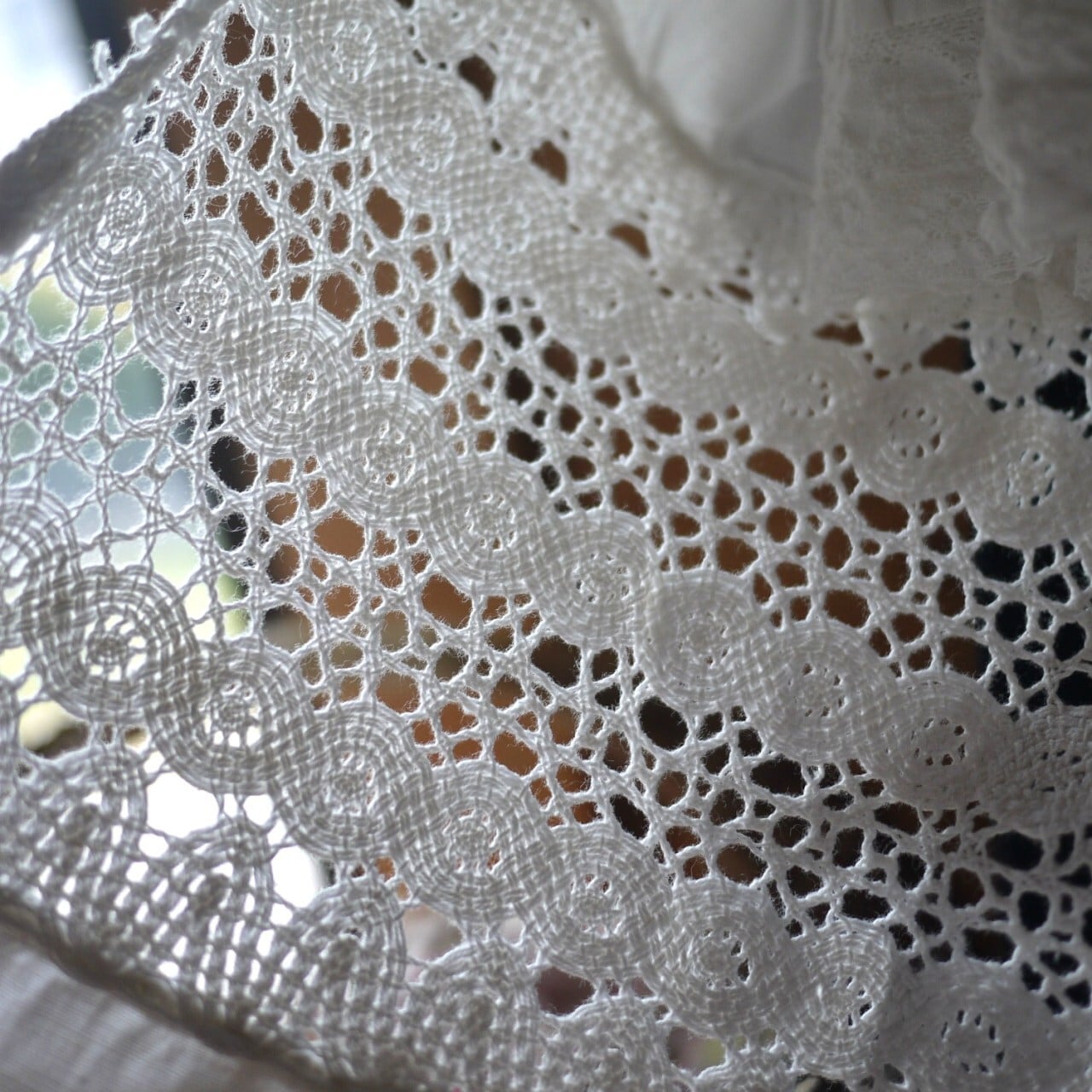 レース生地の端などに、小さな端糸、ほつれがあります。