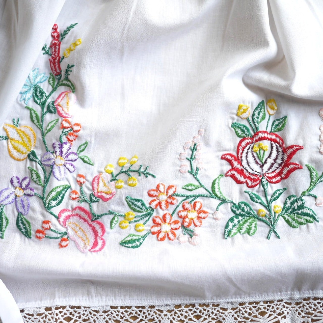 Kalocsa ハンガリー刺繍 レース カロチャ 花柄エプロン