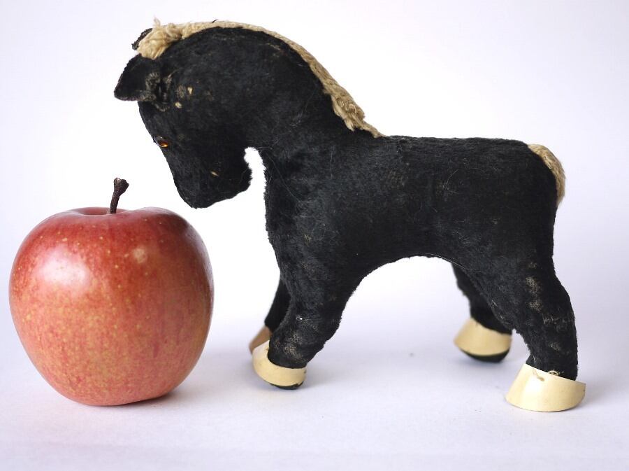 アンティーク UK 黒い馬のぬいぐるみ イギリス グラスアイ 木毛詰め