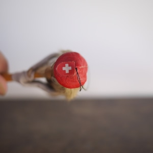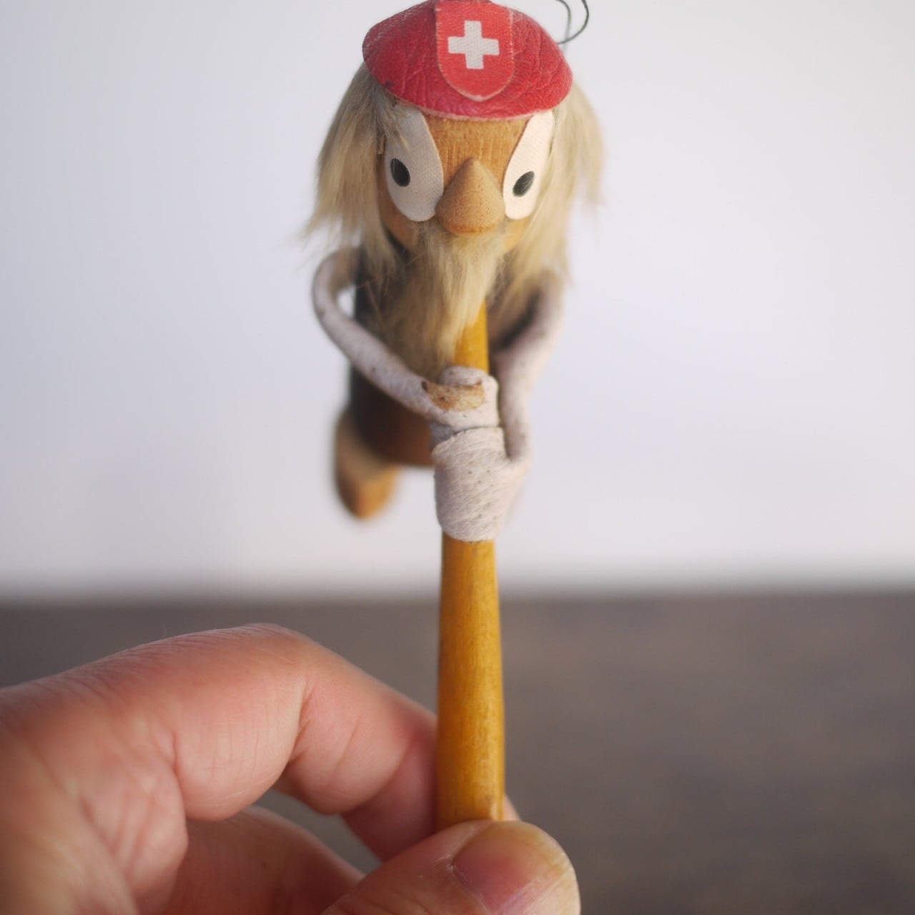 腕は皮革、ボディは木製、リアルファーが使われています。