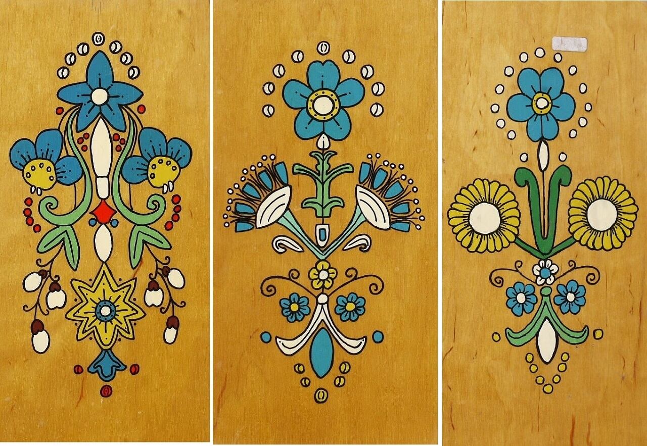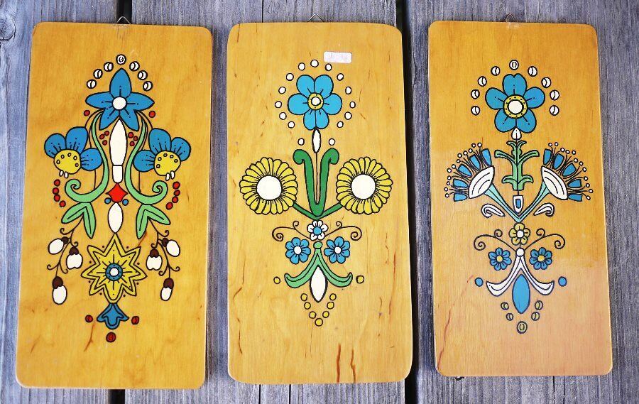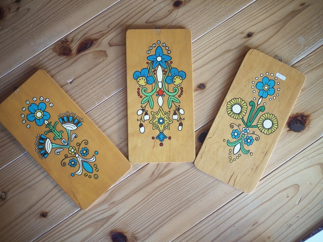 花のペイント壁飾り3枚 ヴィンテージドイツ