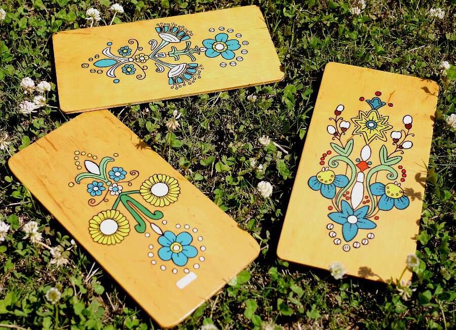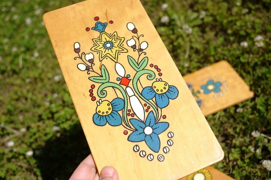ナチュラルな木質に、レトロな東欧風の図柄。