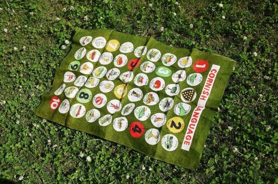 コーンウォールの言語と英語が対比されたかわいい柄。
