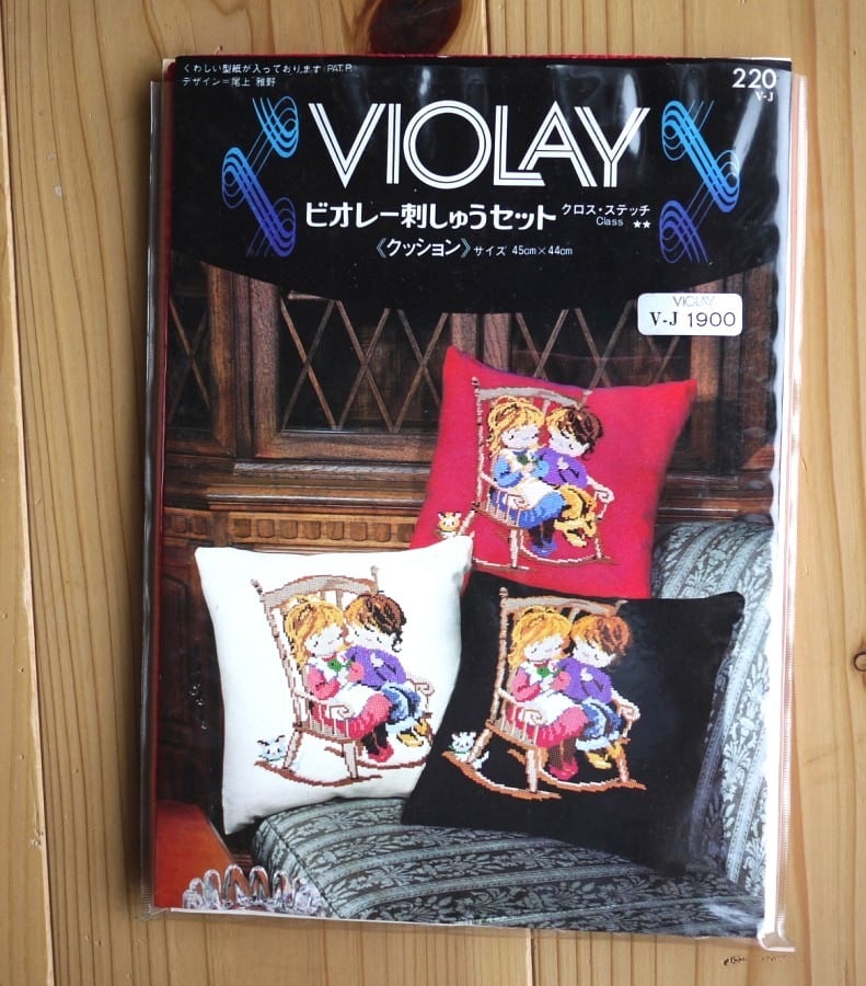 昭和刺繍キット レトロ ビオレー クロスステッチ クッション45×44㎝