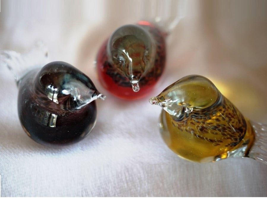 北欧フィンランドBIANCO BLUアートガラスバード3羽