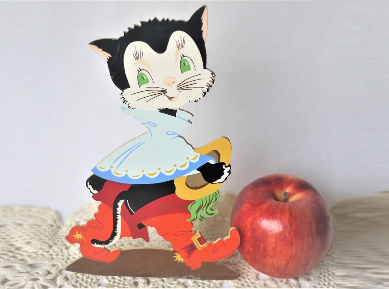 Märchen-Holzbild 壁飾り板絵 1969 長靴をはいた猫
