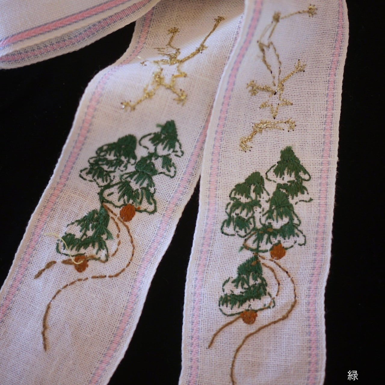 土台布はおそらくリネンと思われます。