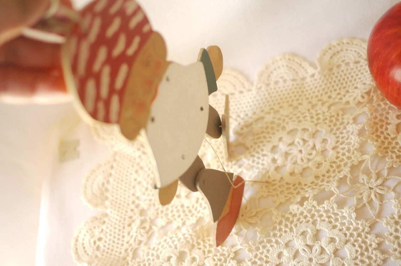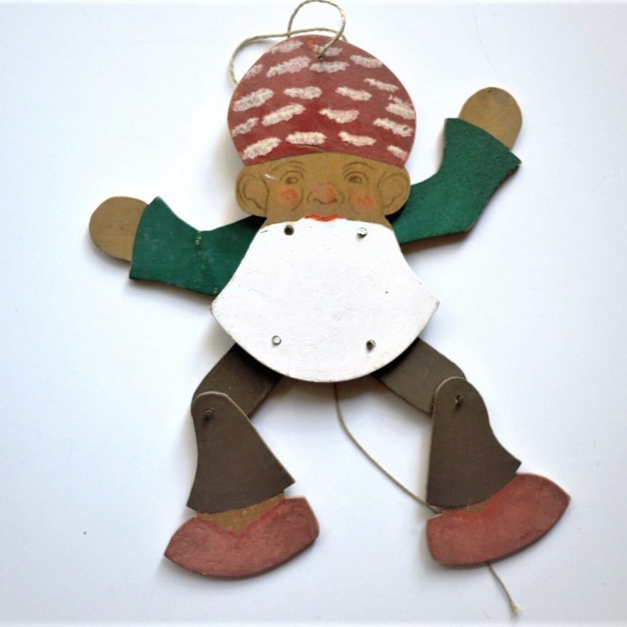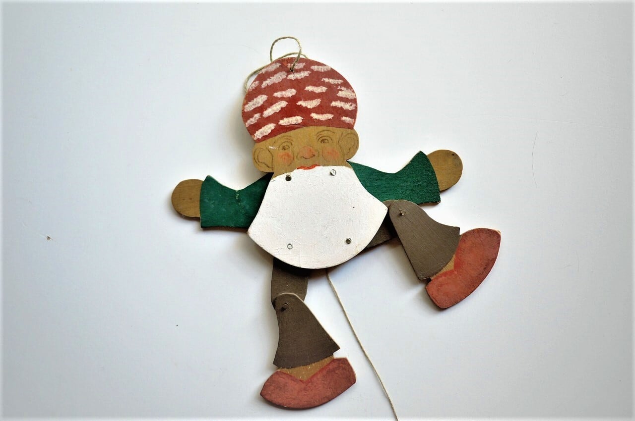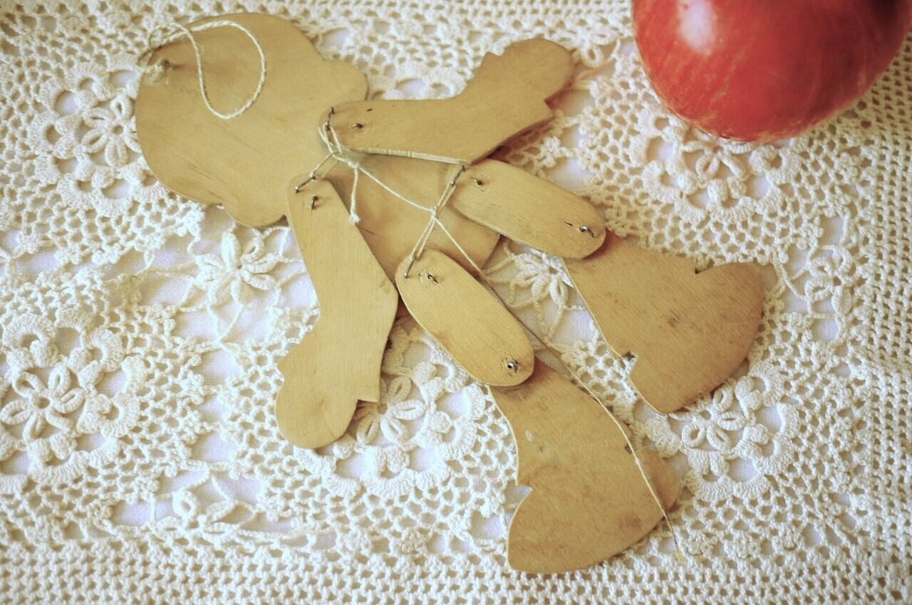 紐を引くと手足が吊り上がる仕掛け人形です。