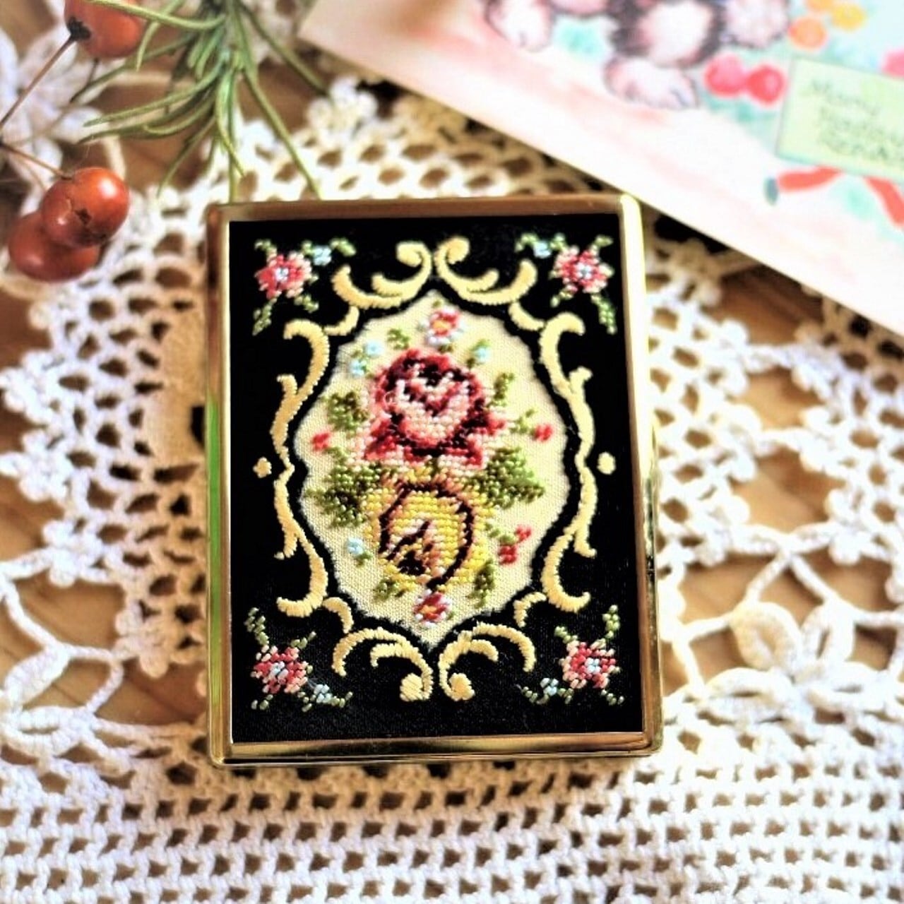 プチポワン刺繍 スクエアコンパクト EIN Golden Seal 白粉