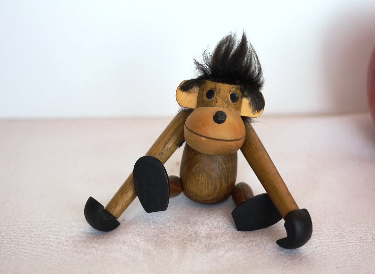 ヴィンテージ 猿の木製人形 デンマーク 木製玩具 リプロダクト カイボイスン