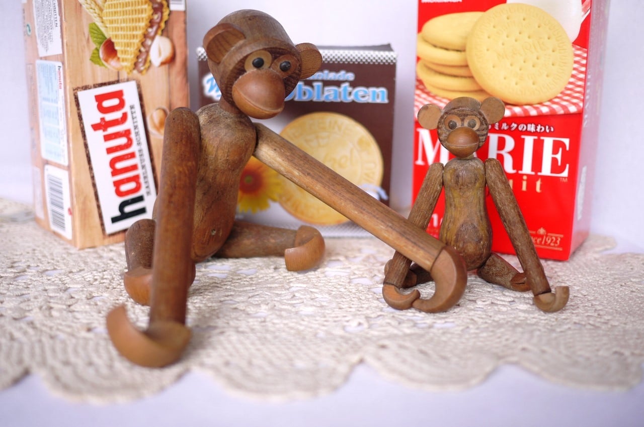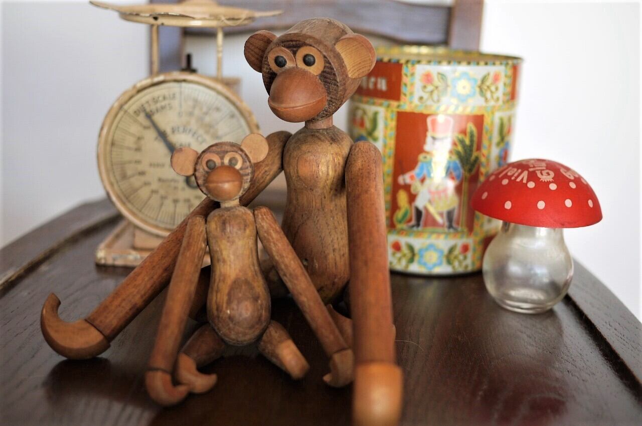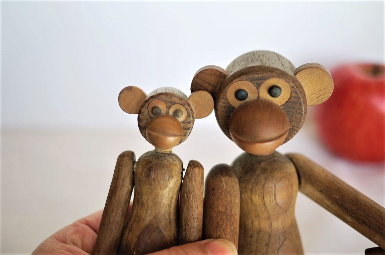 猿の木製人形親子 デンマーク リプロダクト カイボイスン