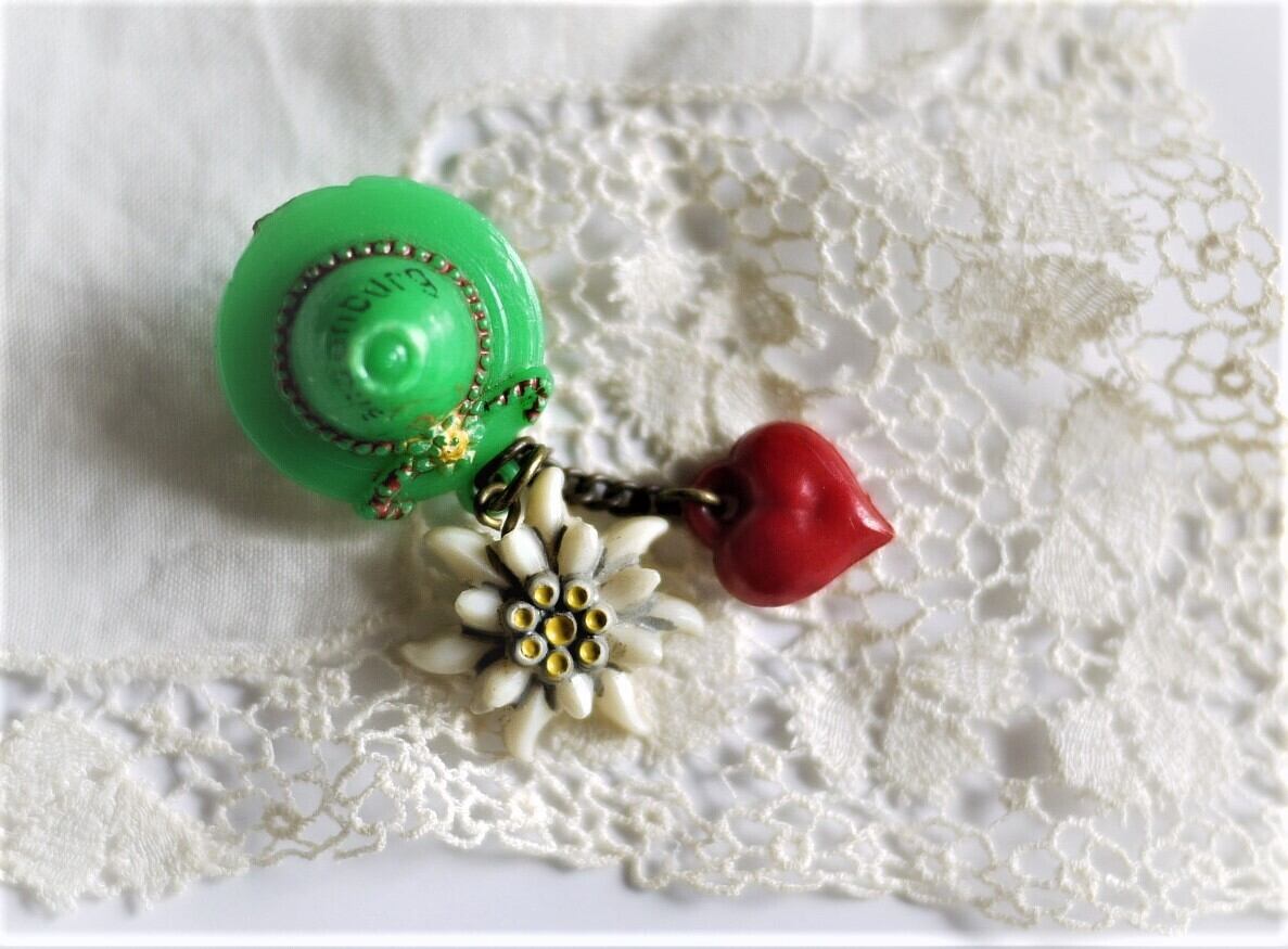 アルプス スーベニールブローチ チロル エーデルワイスとハート 1940~1950年代 ヴィンテージ ドイツ