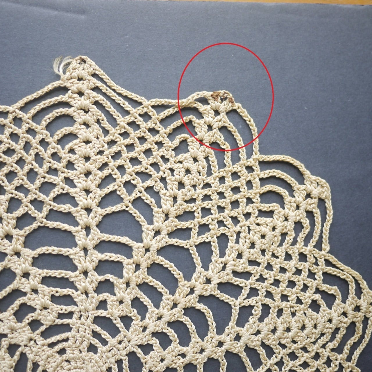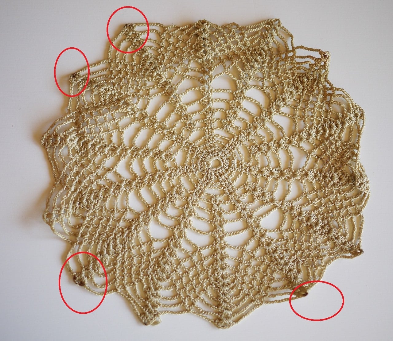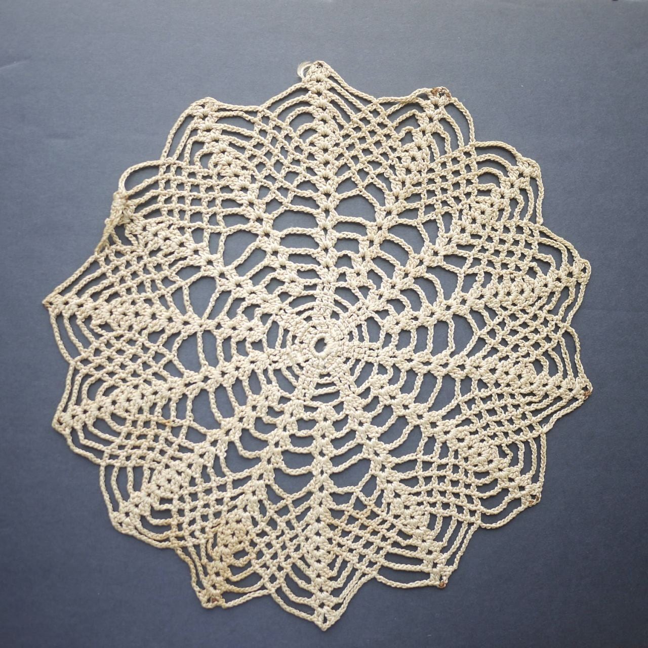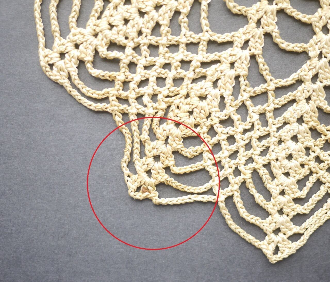 太めの糸で蜘蛛の巣状に編まれたドイリー。