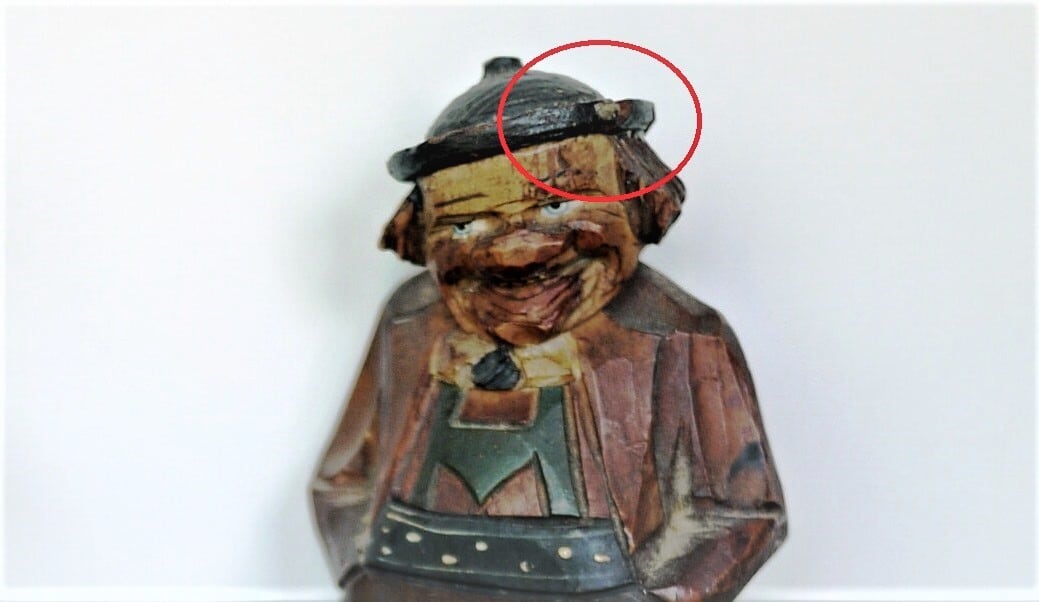 素朴な木彫り人形、ひょうきんな表情のおじさんです。