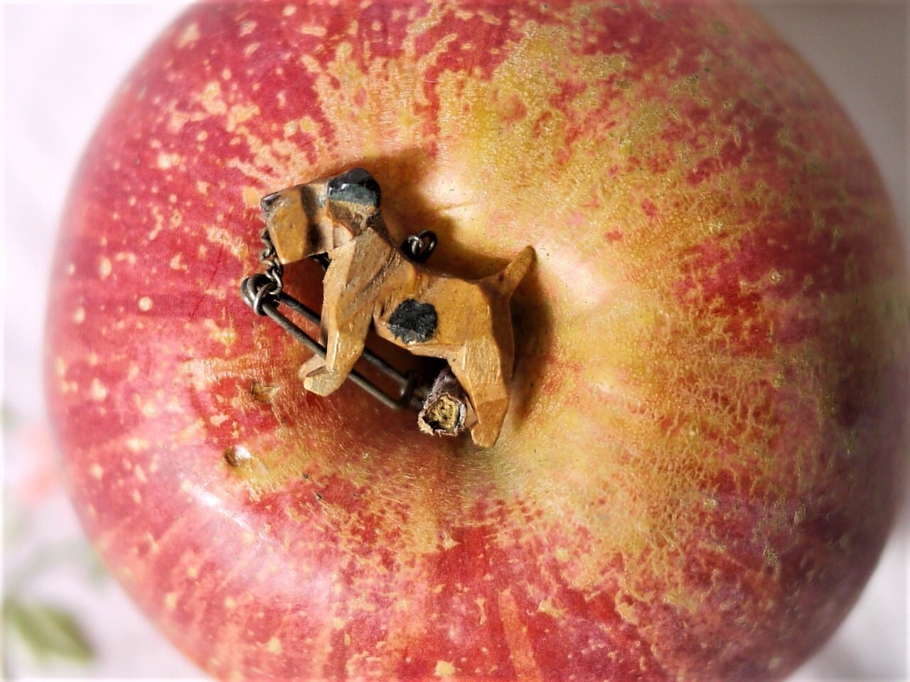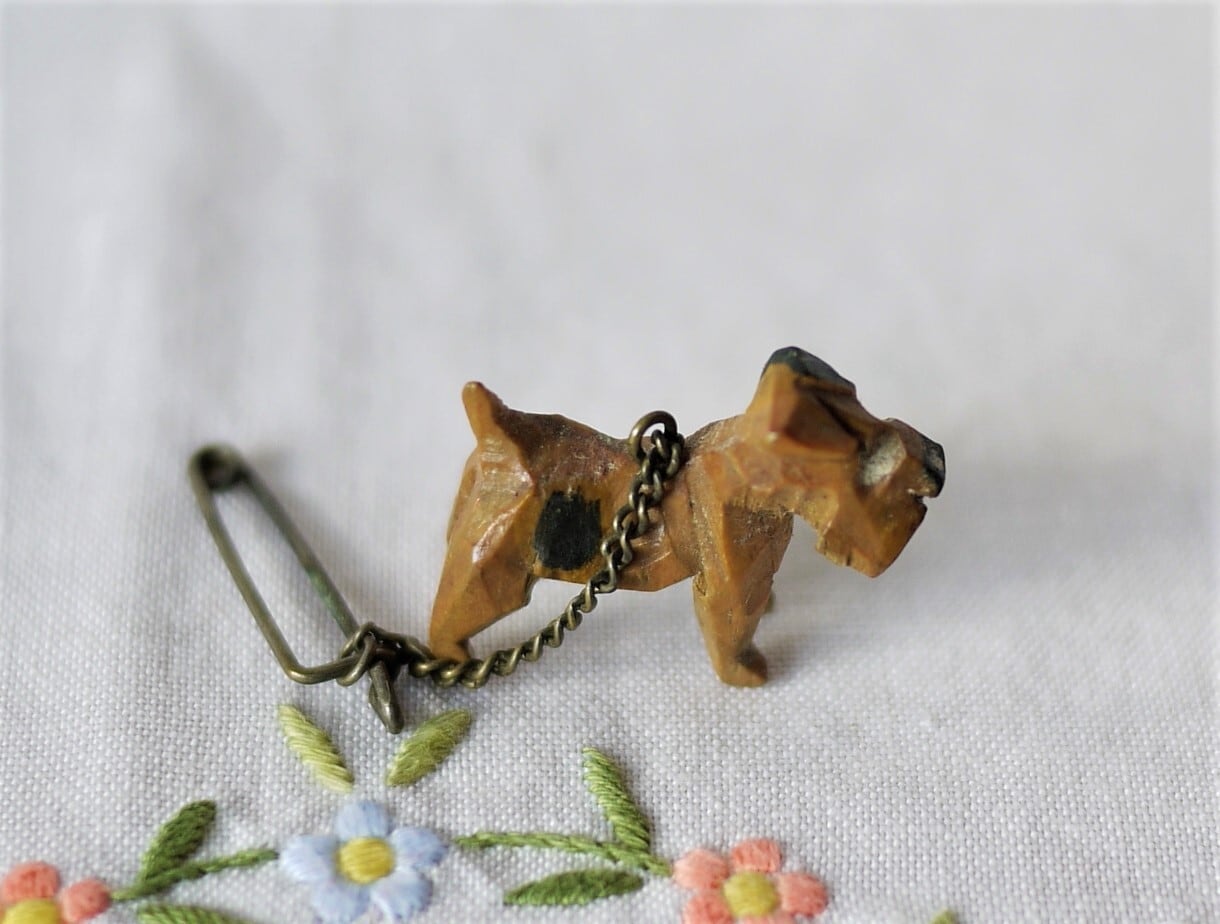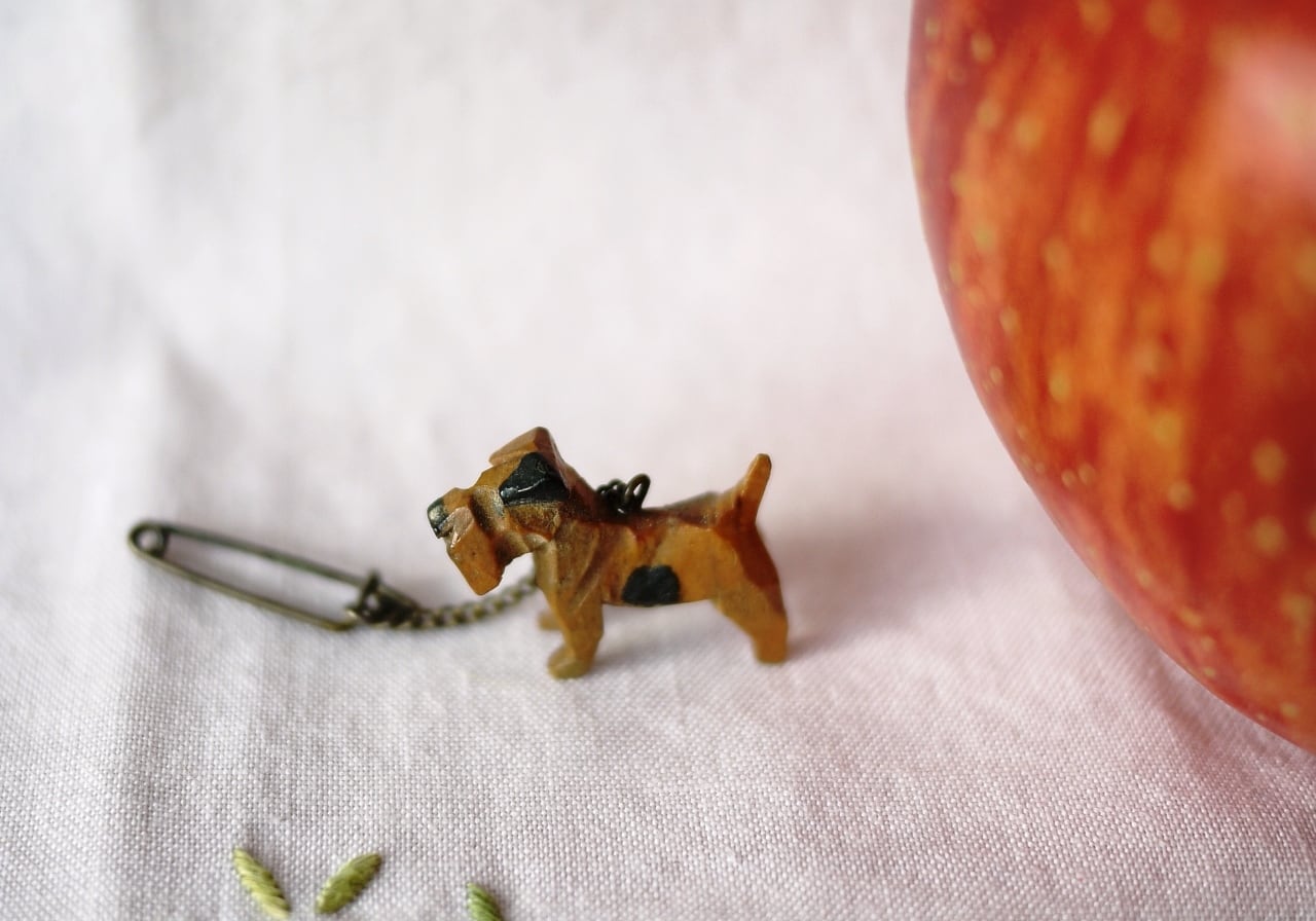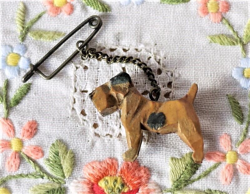 イタリア 木彫り犬のブローチ 豆犬 アンリ好き