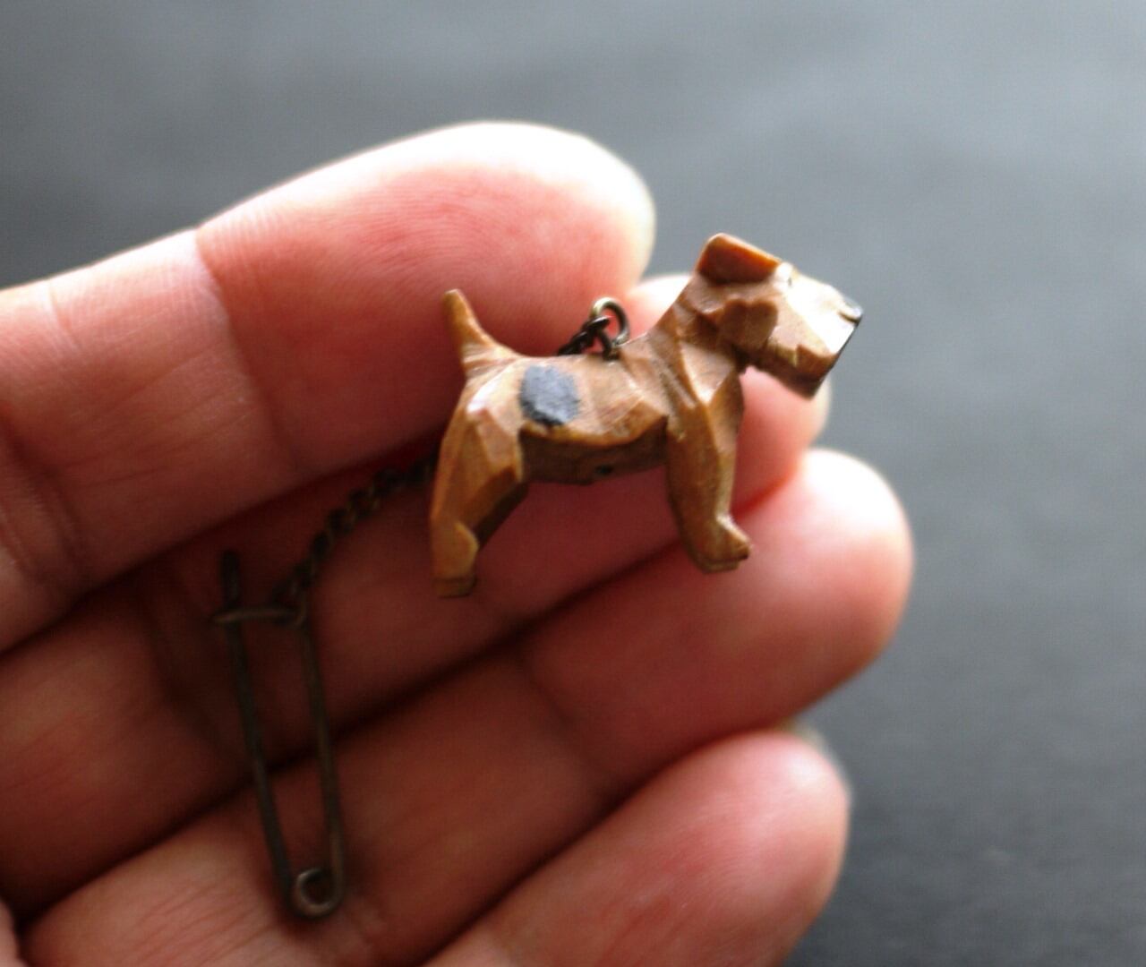 [木彫り犬のブローチ 豆犬 アンリ好き イタリア ]