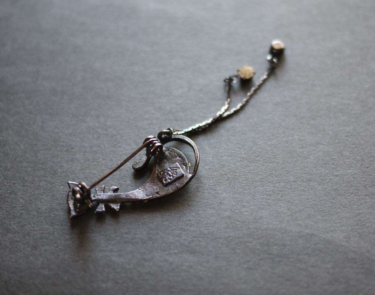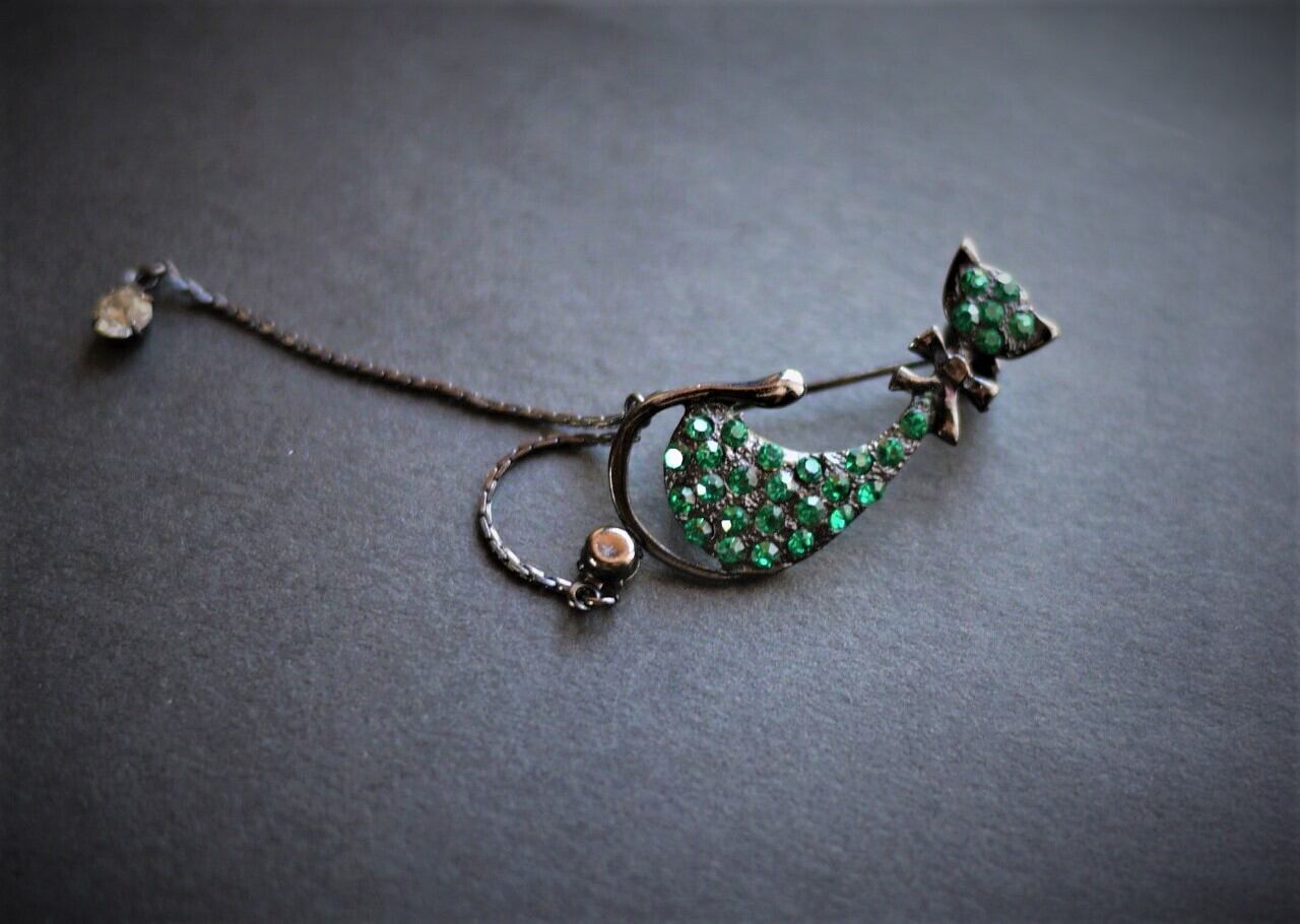2本の揺れるチャームンの先には、透明に輝くラインストーンが光ります。