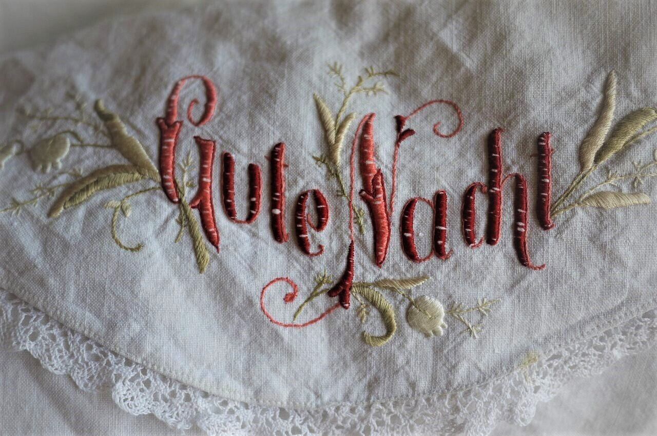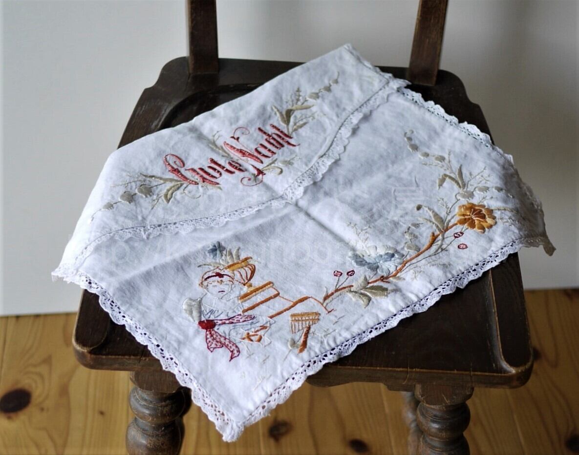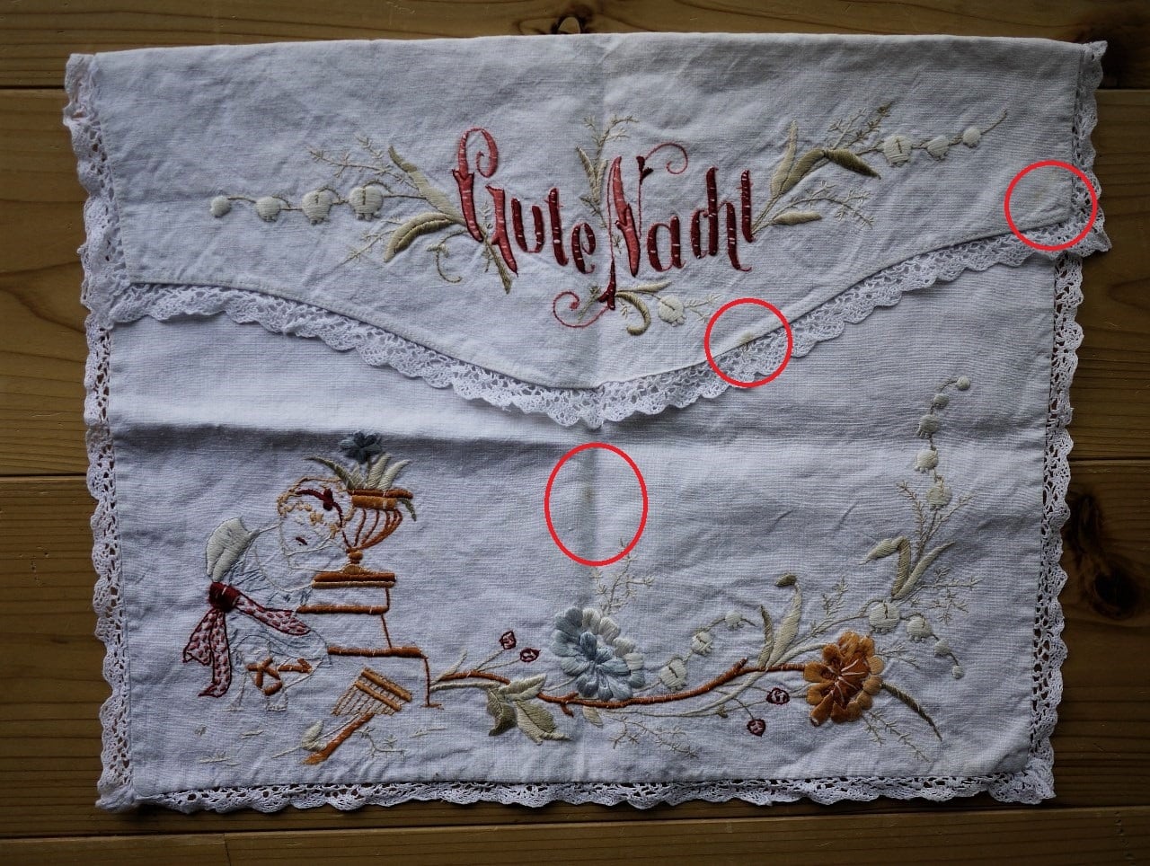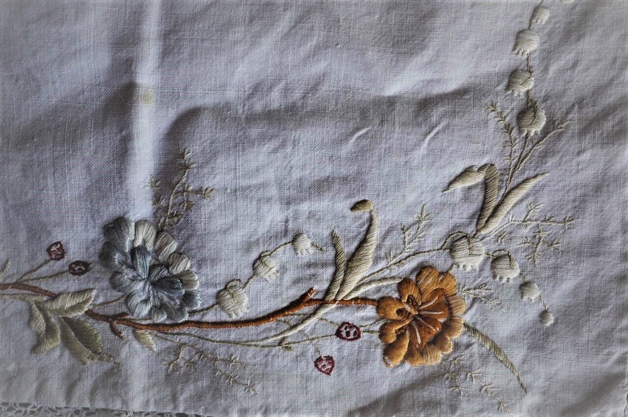サテンステッチの花と少女 ナイティケース リネンとレース