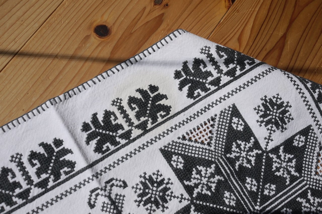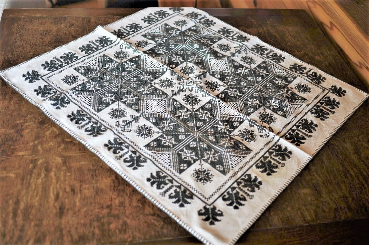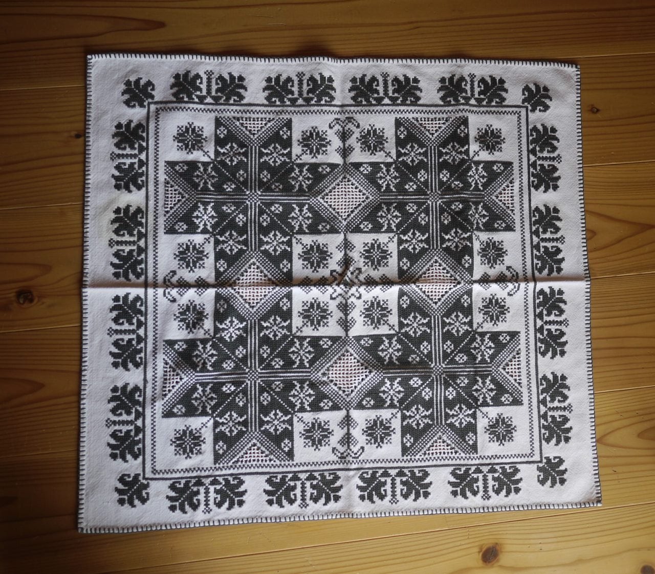 [ 黒のクロスステッチ テーブルクロス ブラックワーク ]