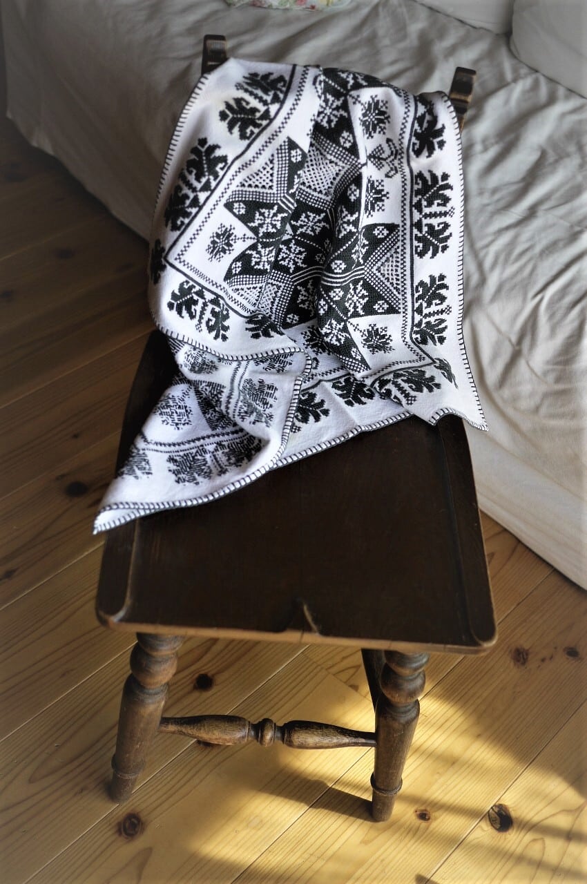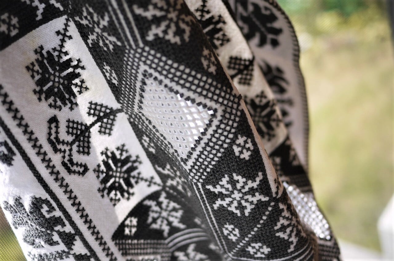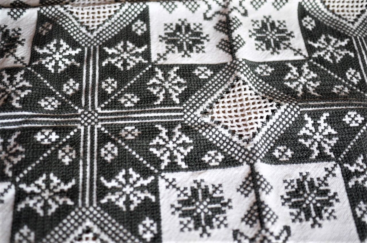 [ 黒のクロスステッチ テーブルクロス ブラックワーク ]