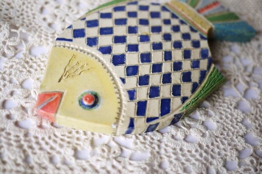 ドイツ 魚の陶板壁掛 バイエルン柄 J.F.F