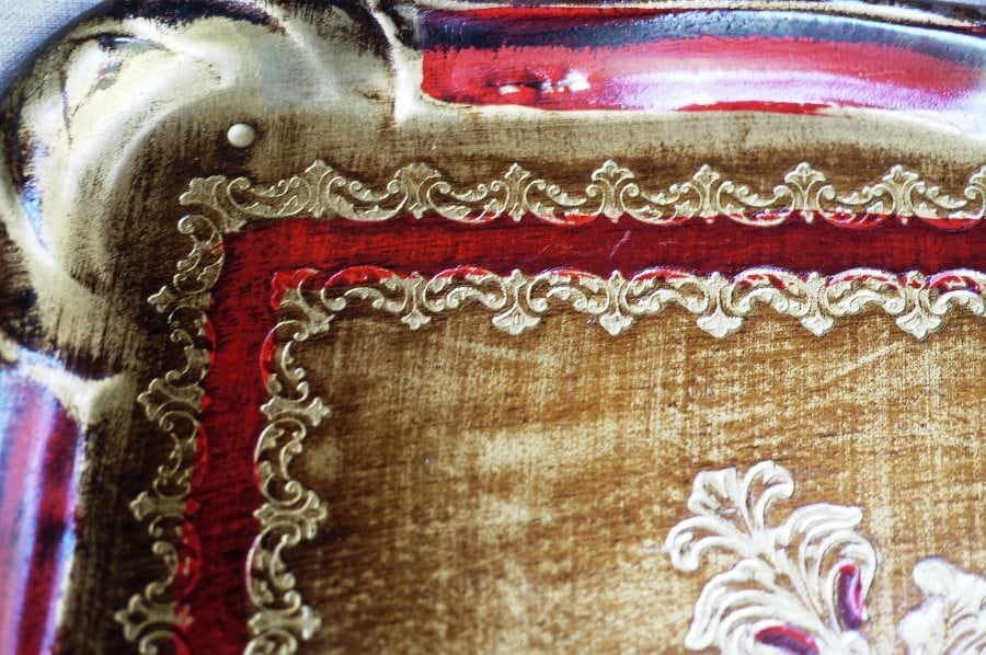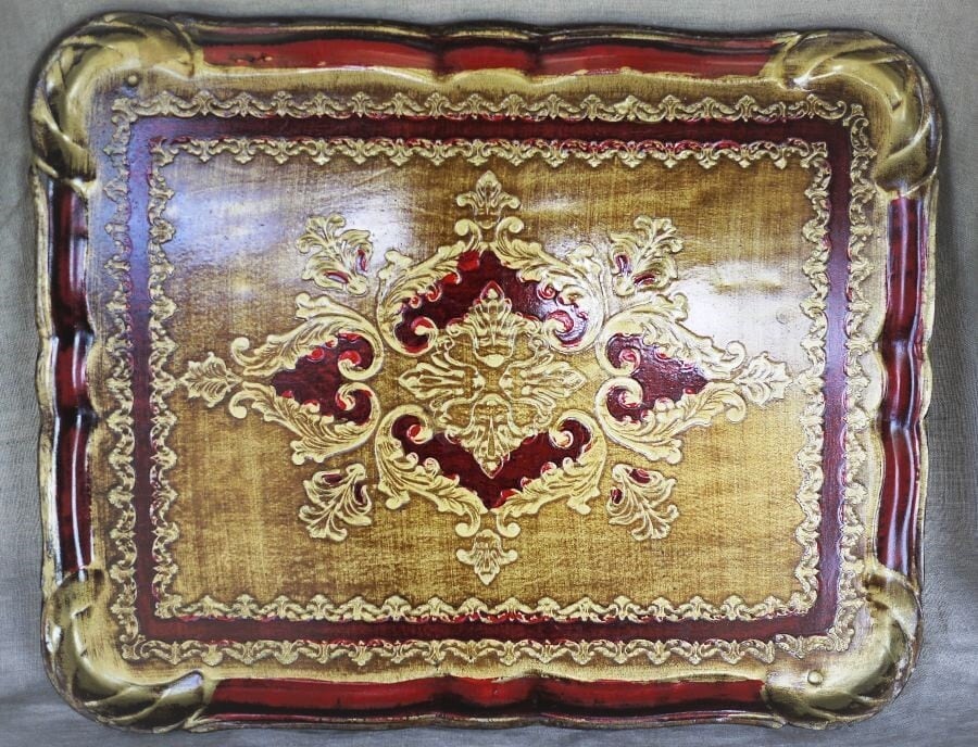 イタリアフィレンツェの工芸品、木製トレイです