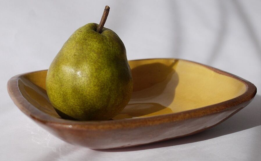 スリップウェア 民芸陶器 黄土色長方深皿 パイ皿 デザイン