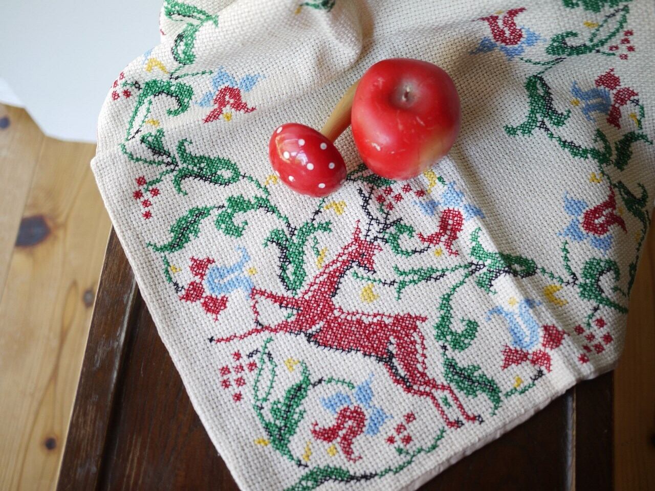 クロスステッチ刺繍 クッションカバー 花 鹿
