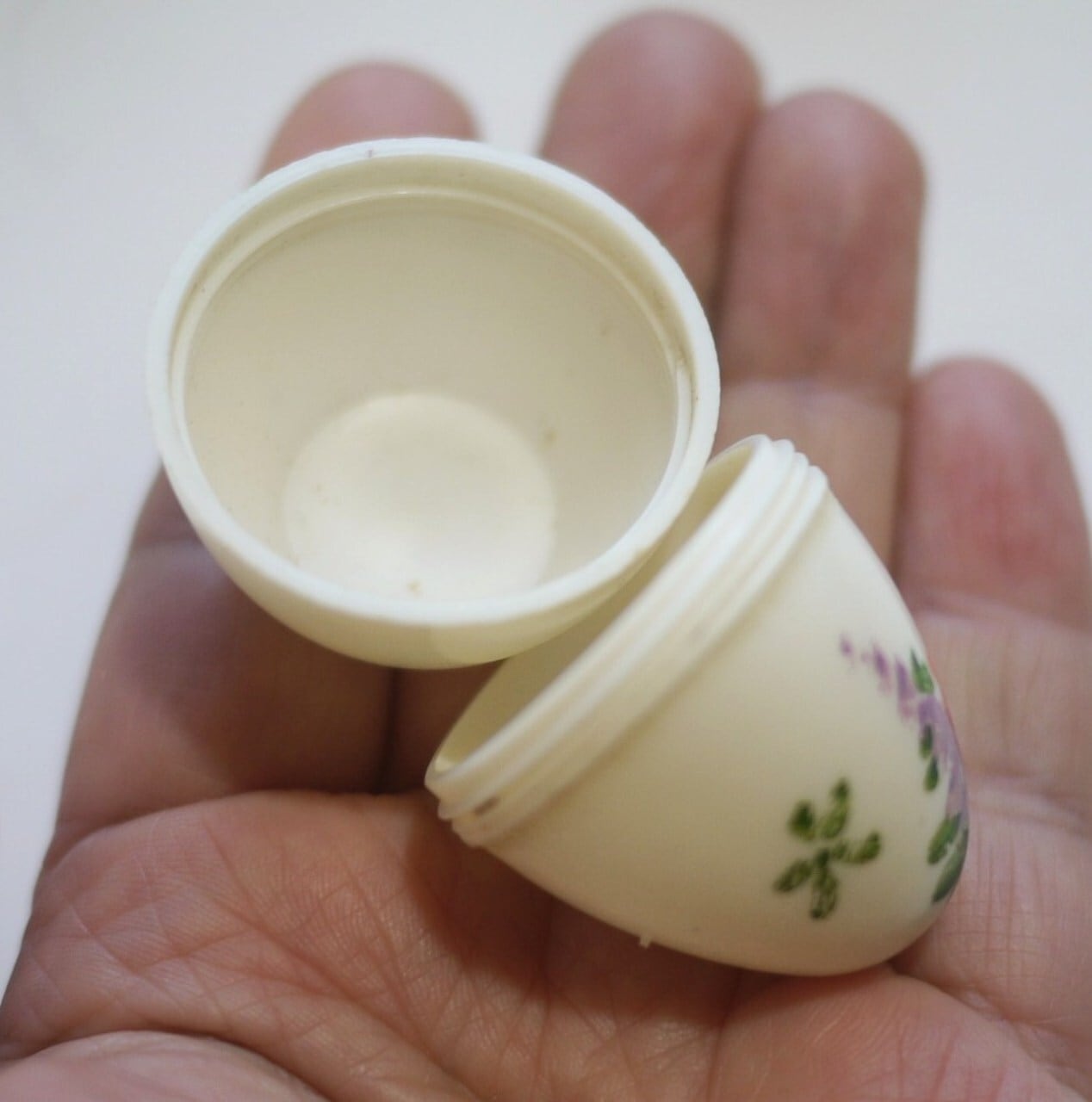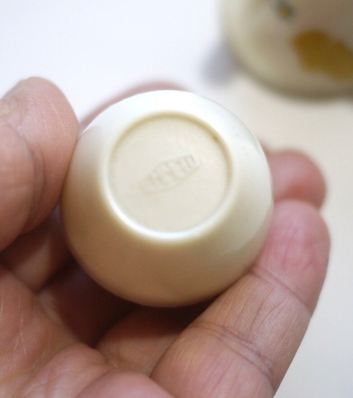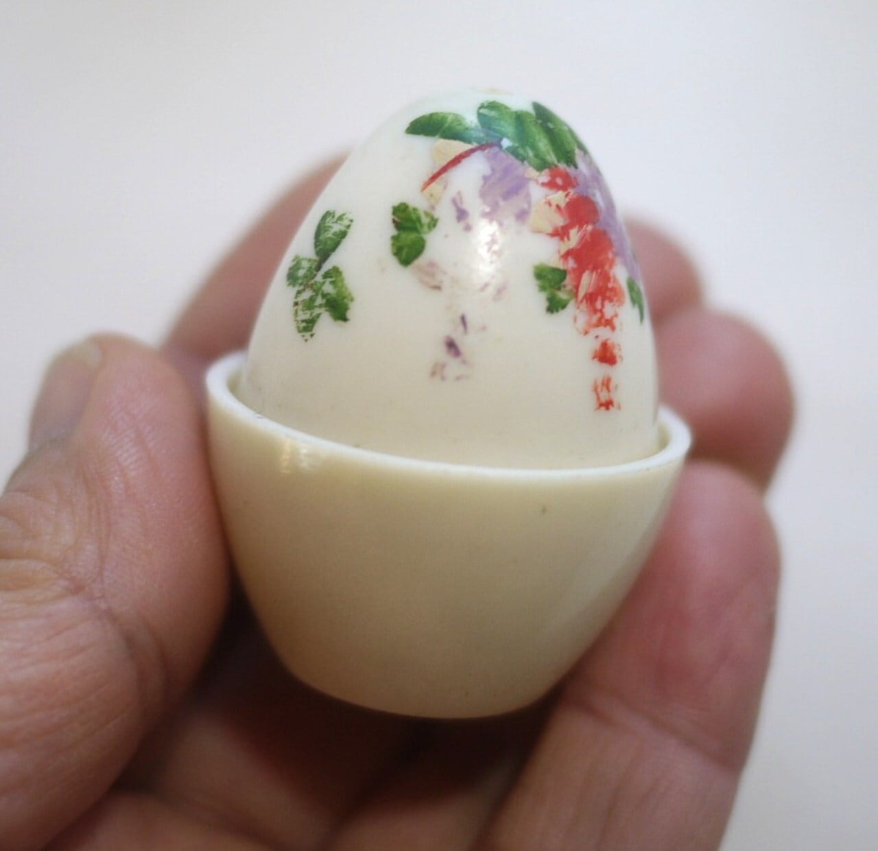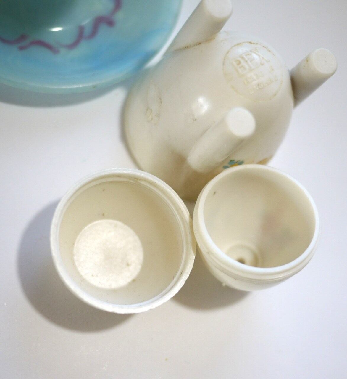 古いプラスチック製のエッグスタンド2個と塩入れ。