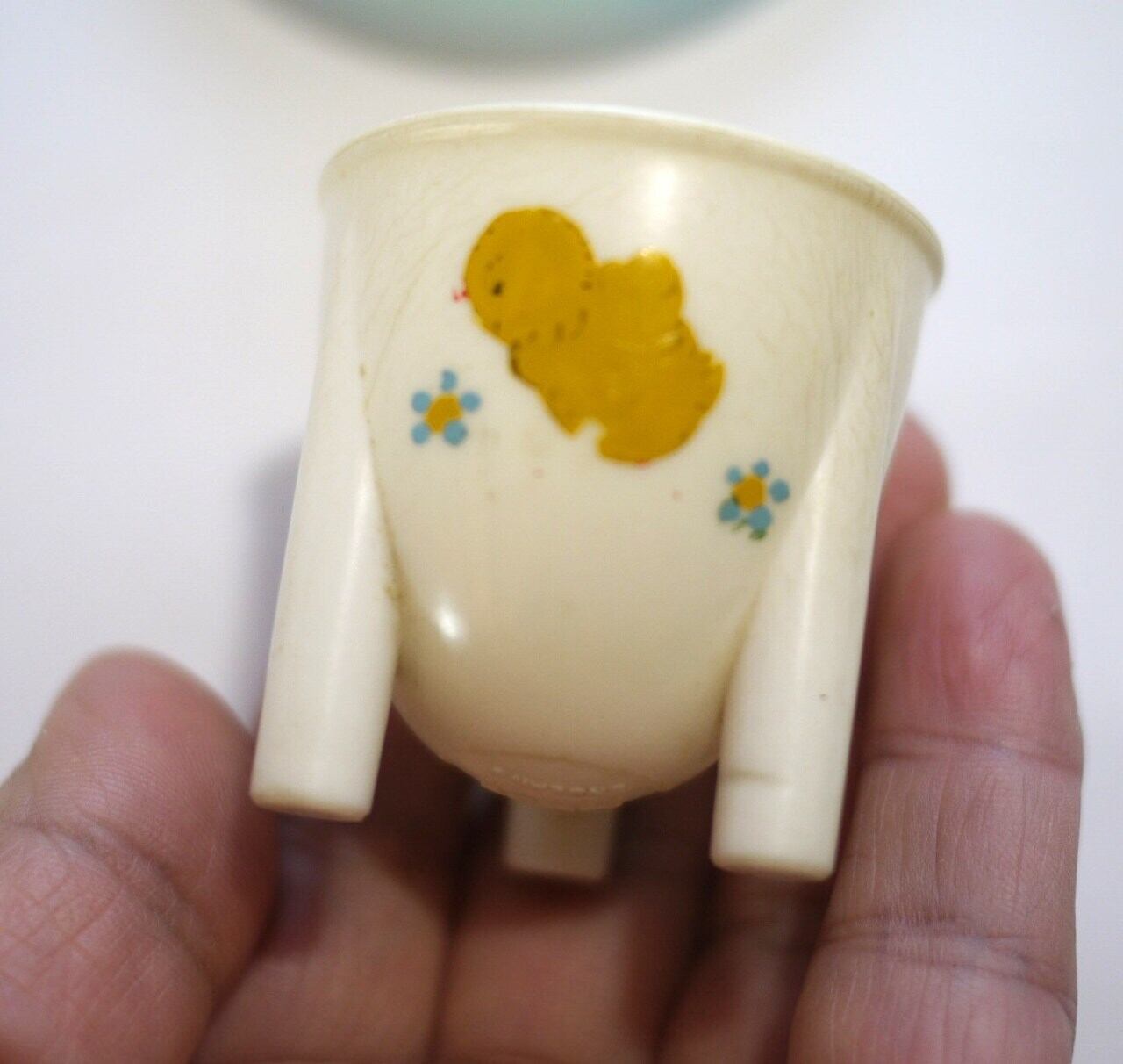 アイボリー色、ひよこデザインのエッグスタンド