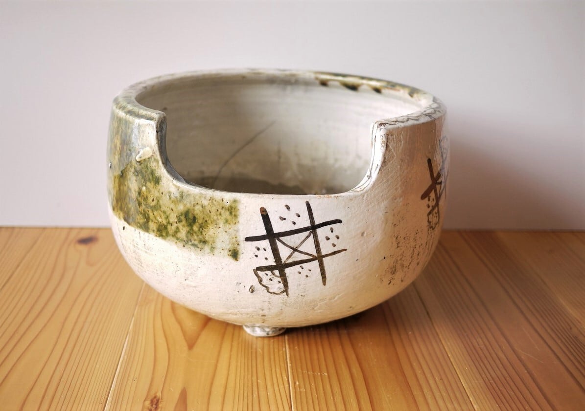 織部焼 陶器風炉 道安型 瓶掛 茶道具