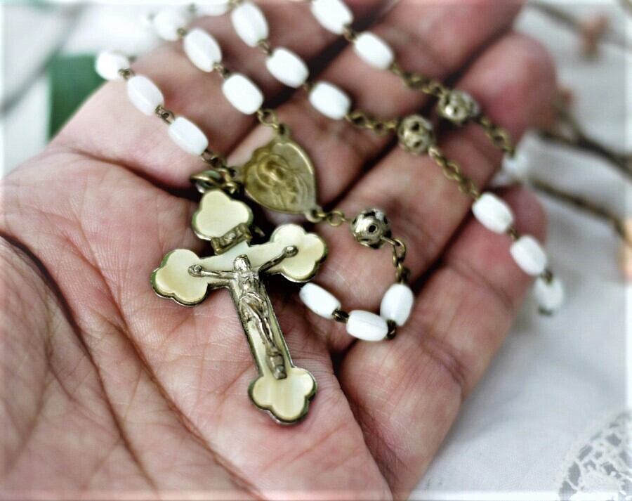 アンティーク ロザリオ 古い硝子ビーズ v.immaculada do sameiro braga ポルトガル
