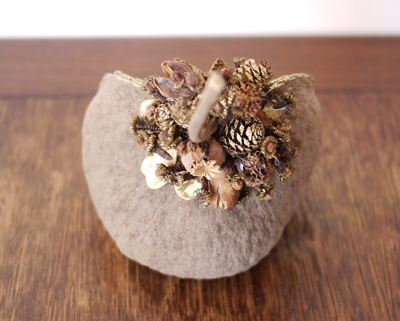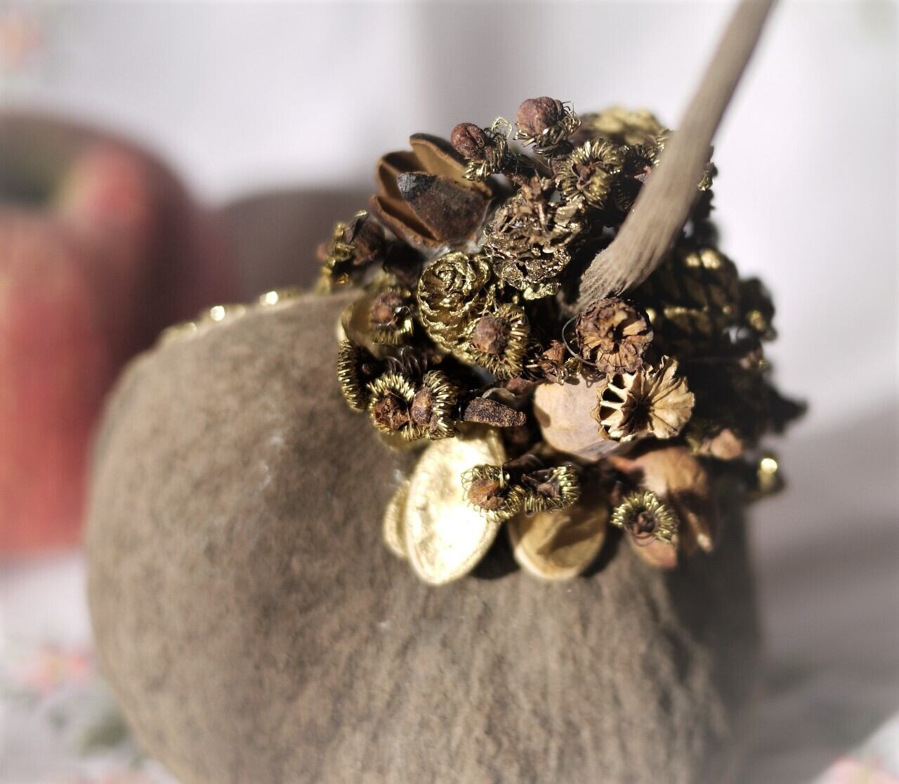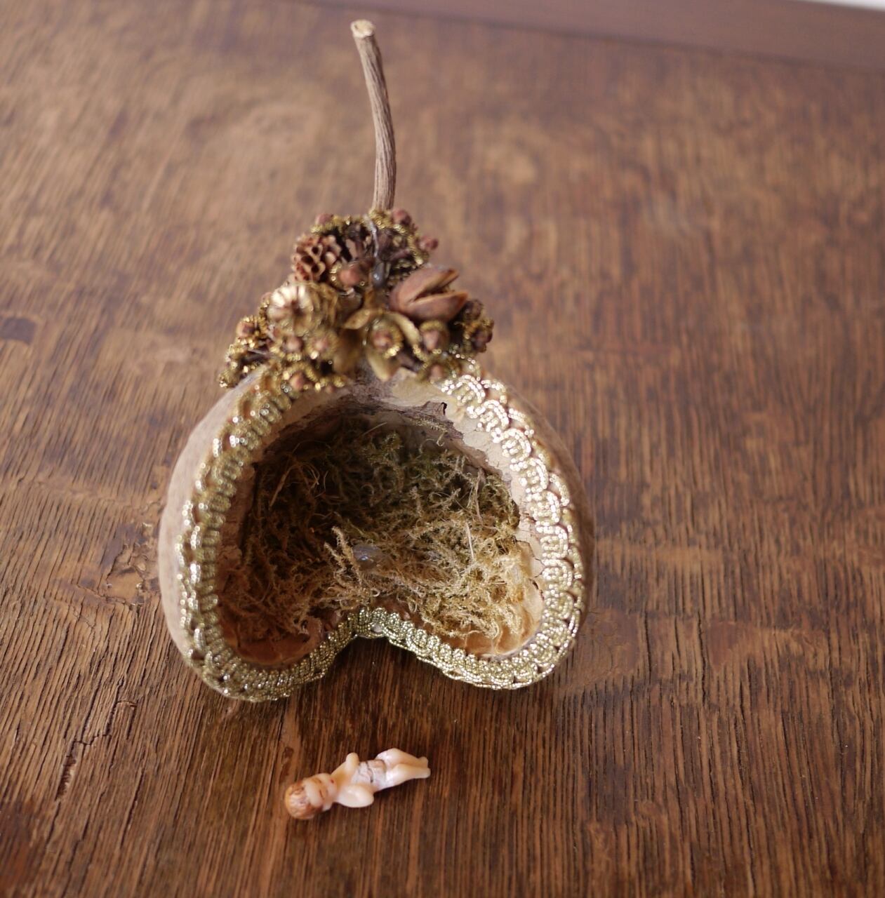 木の実の周りは、ゴールドのブレードで縁取り、