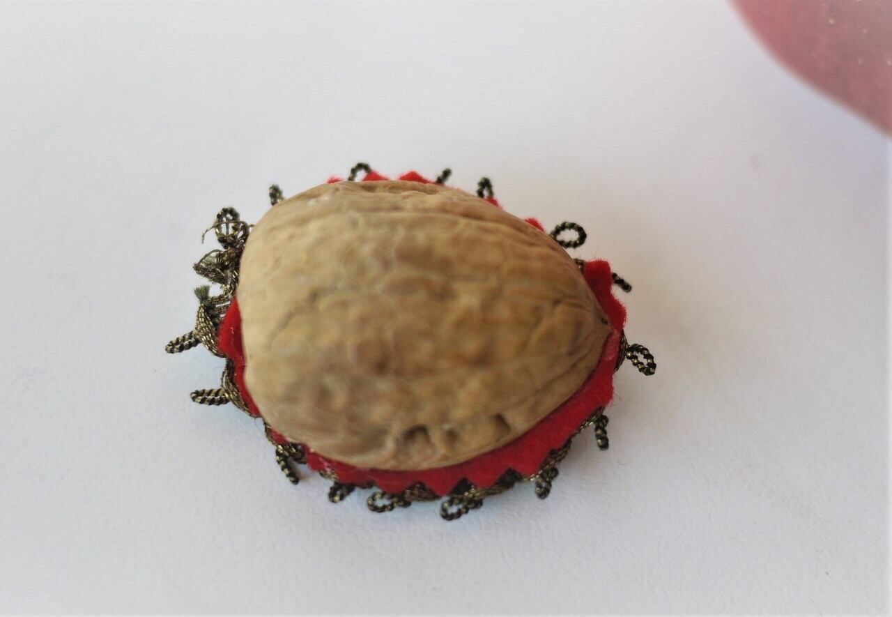 クルミに豪華なゴールドのブレードくるみの中の敷布には赤のフェルトで