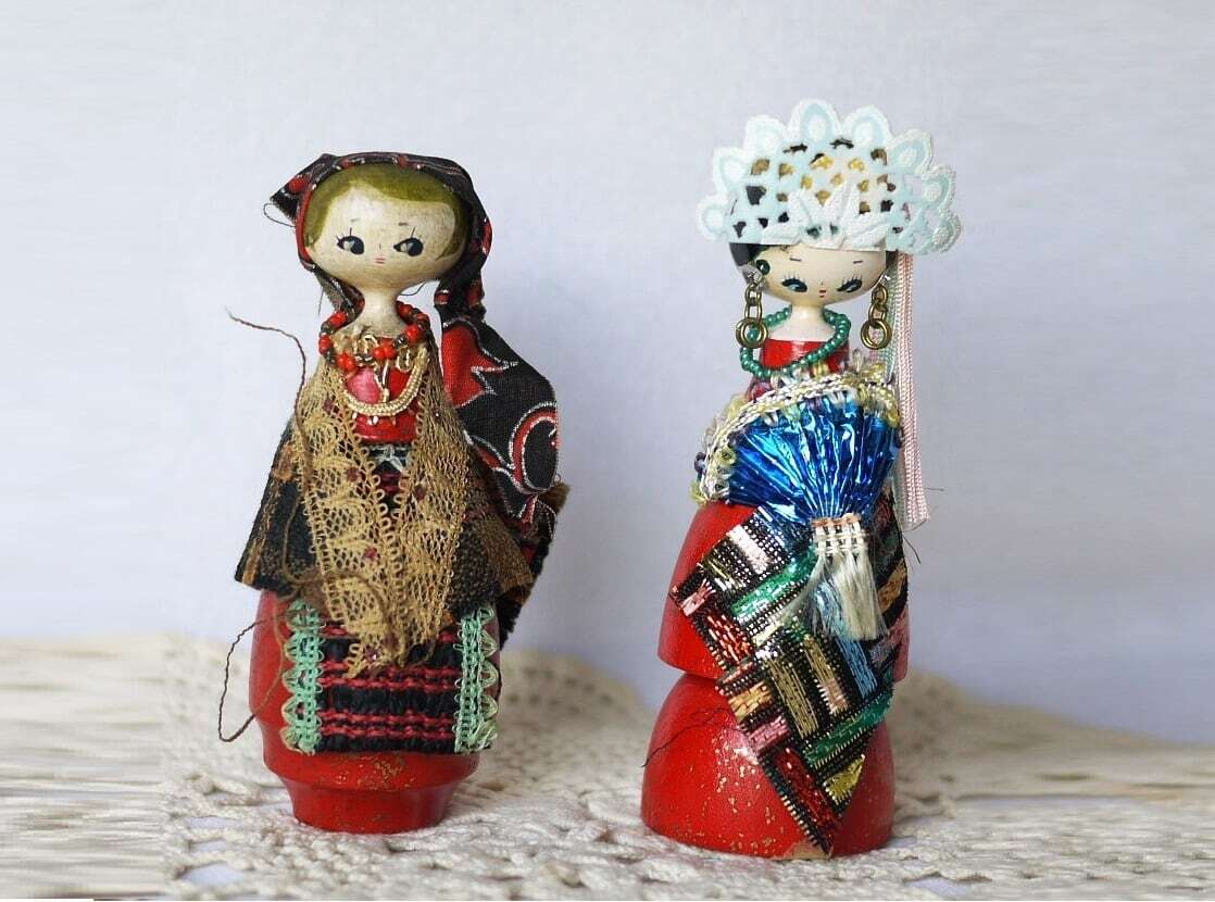 ポーランド 糸巻木製人形 民族衣装 手芸手縫いハンドメイド こけし