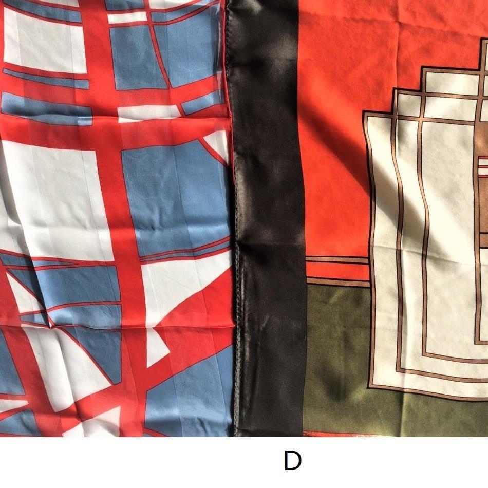 昭和レトロ シルク大判スカーフ ジオメトリックデザイン