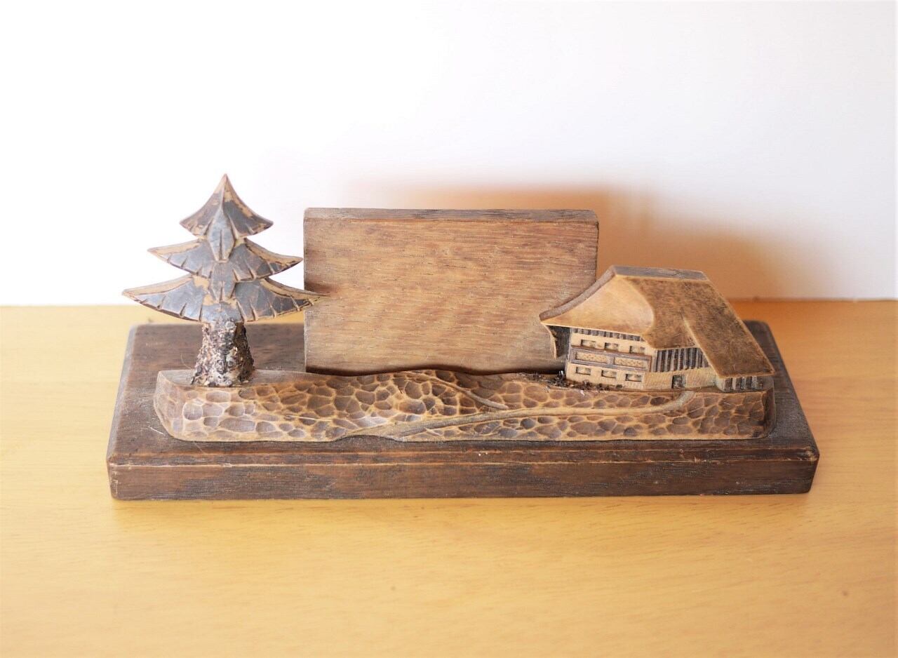 黒い森の木彫り メモスタンド シャレーとモミの木