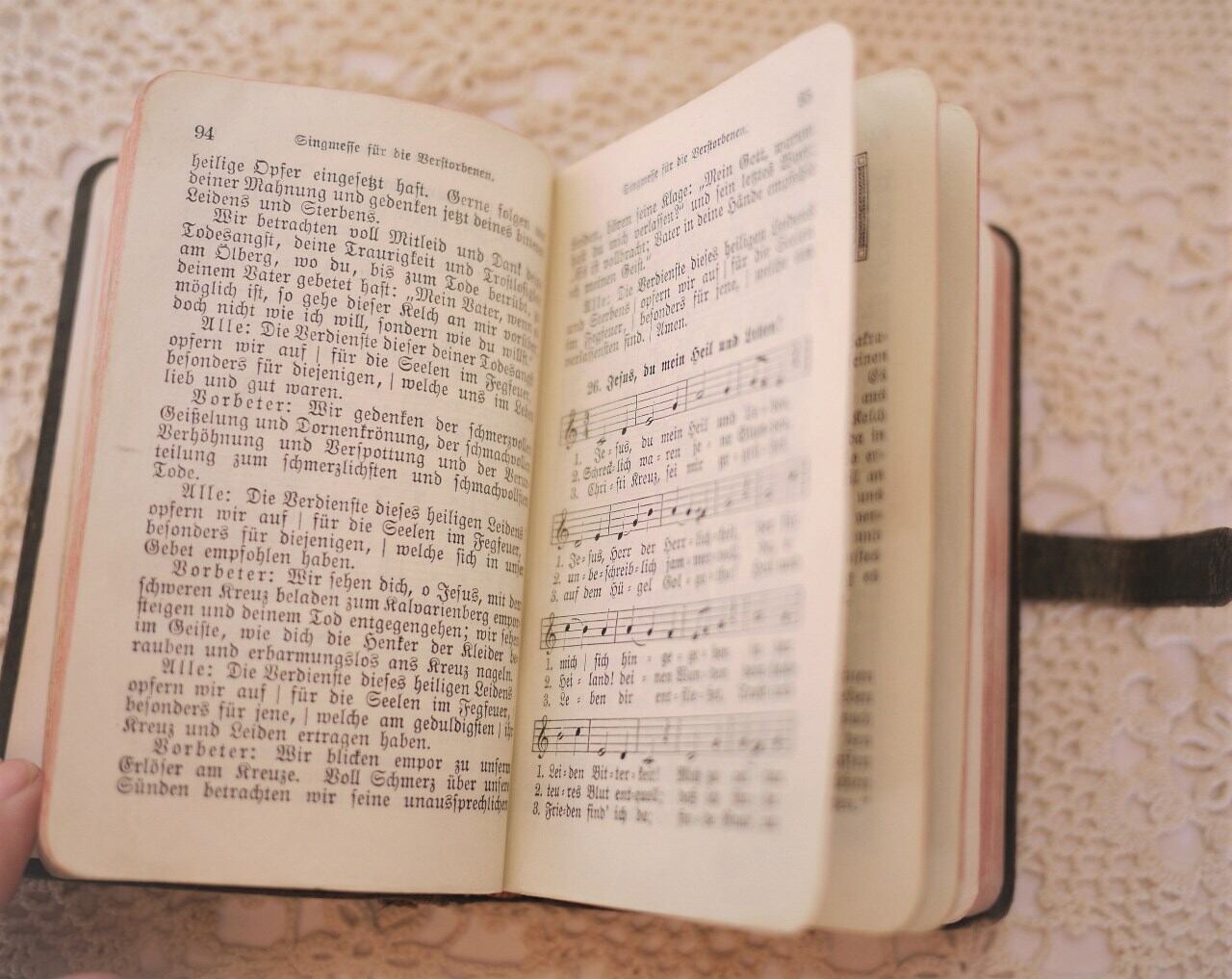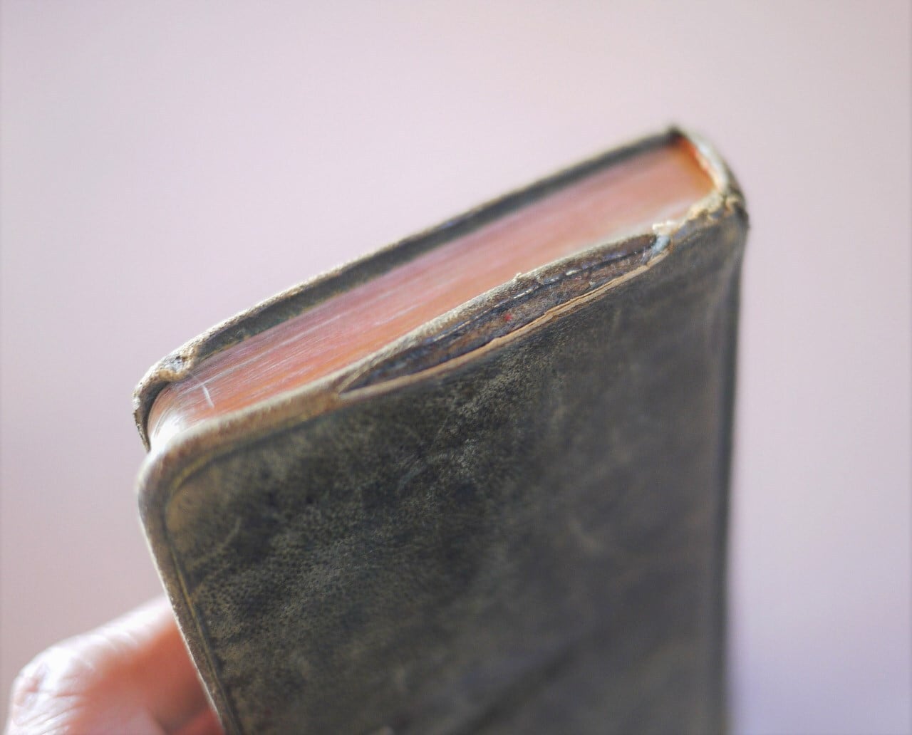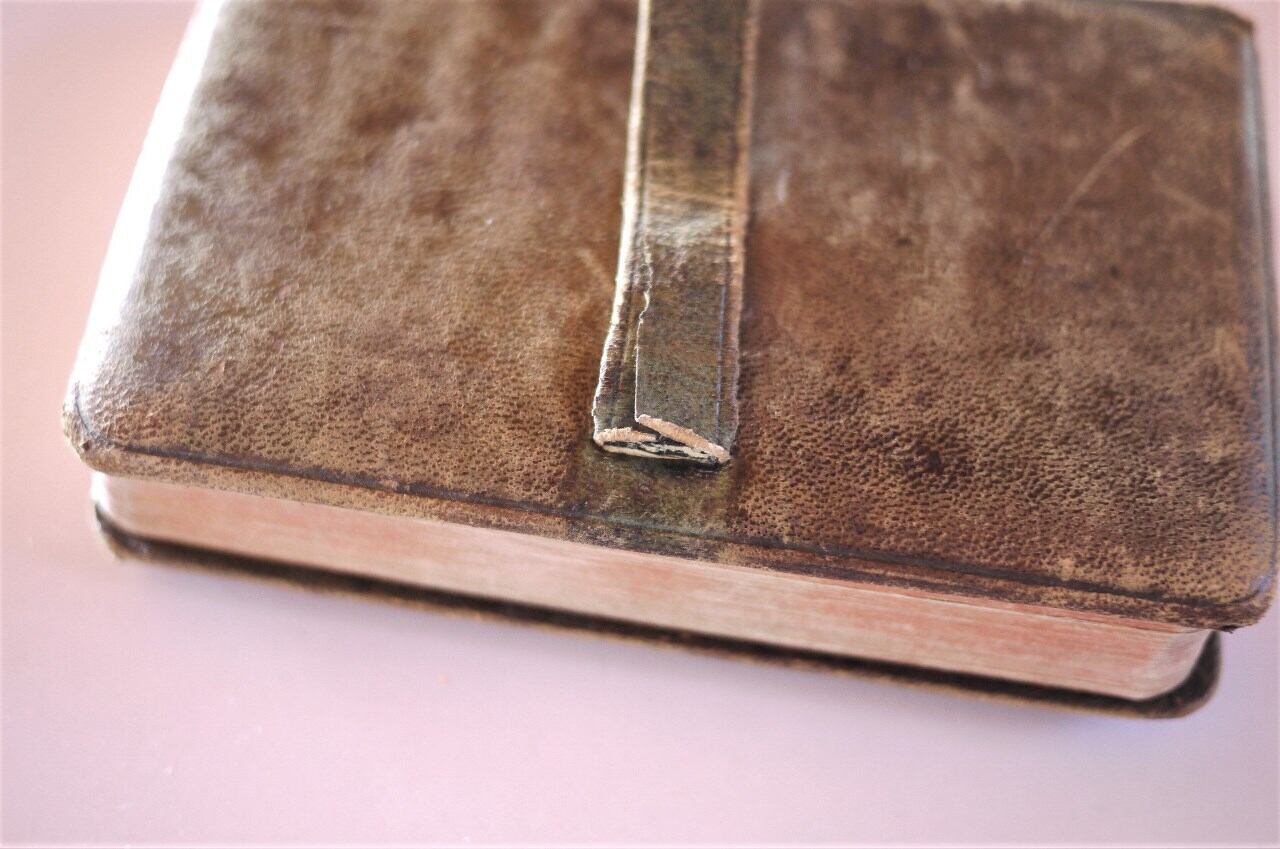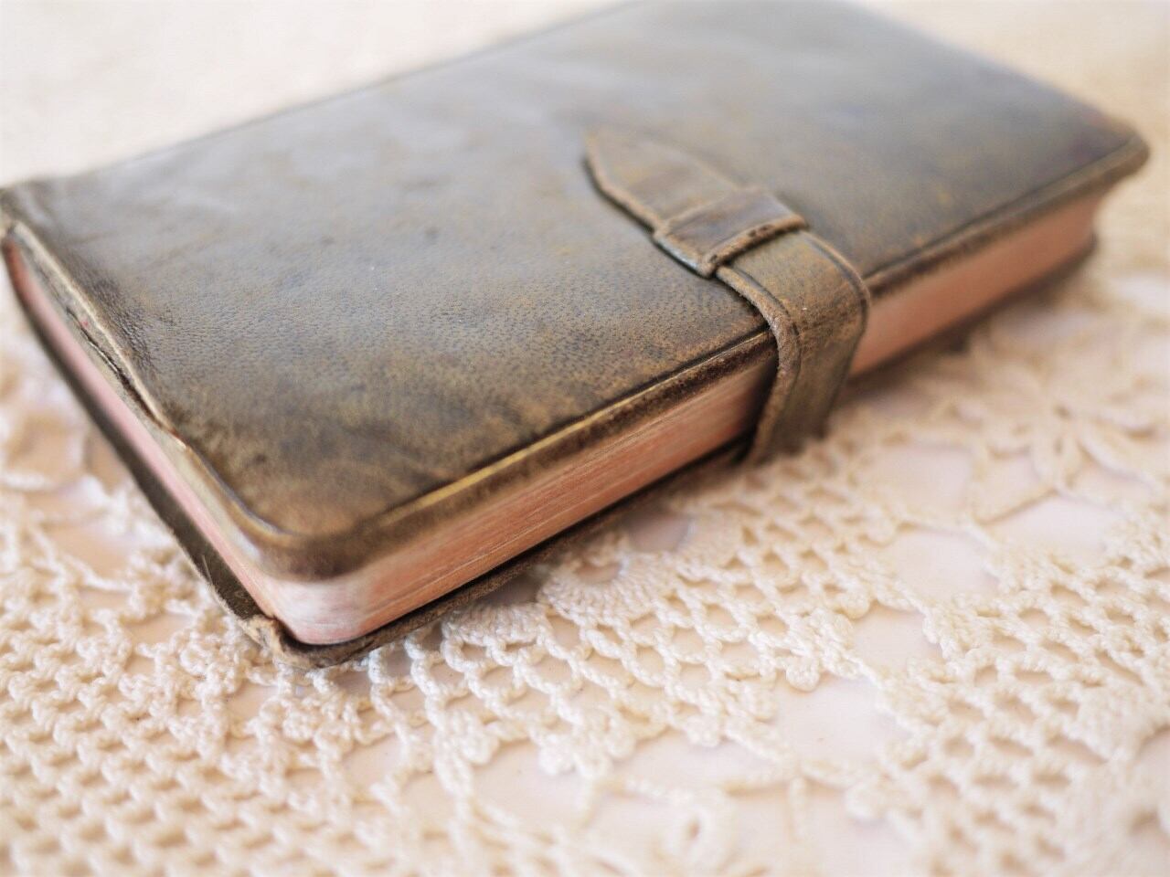 古い革製の祈祷書、讃美歌が一緒になっています。