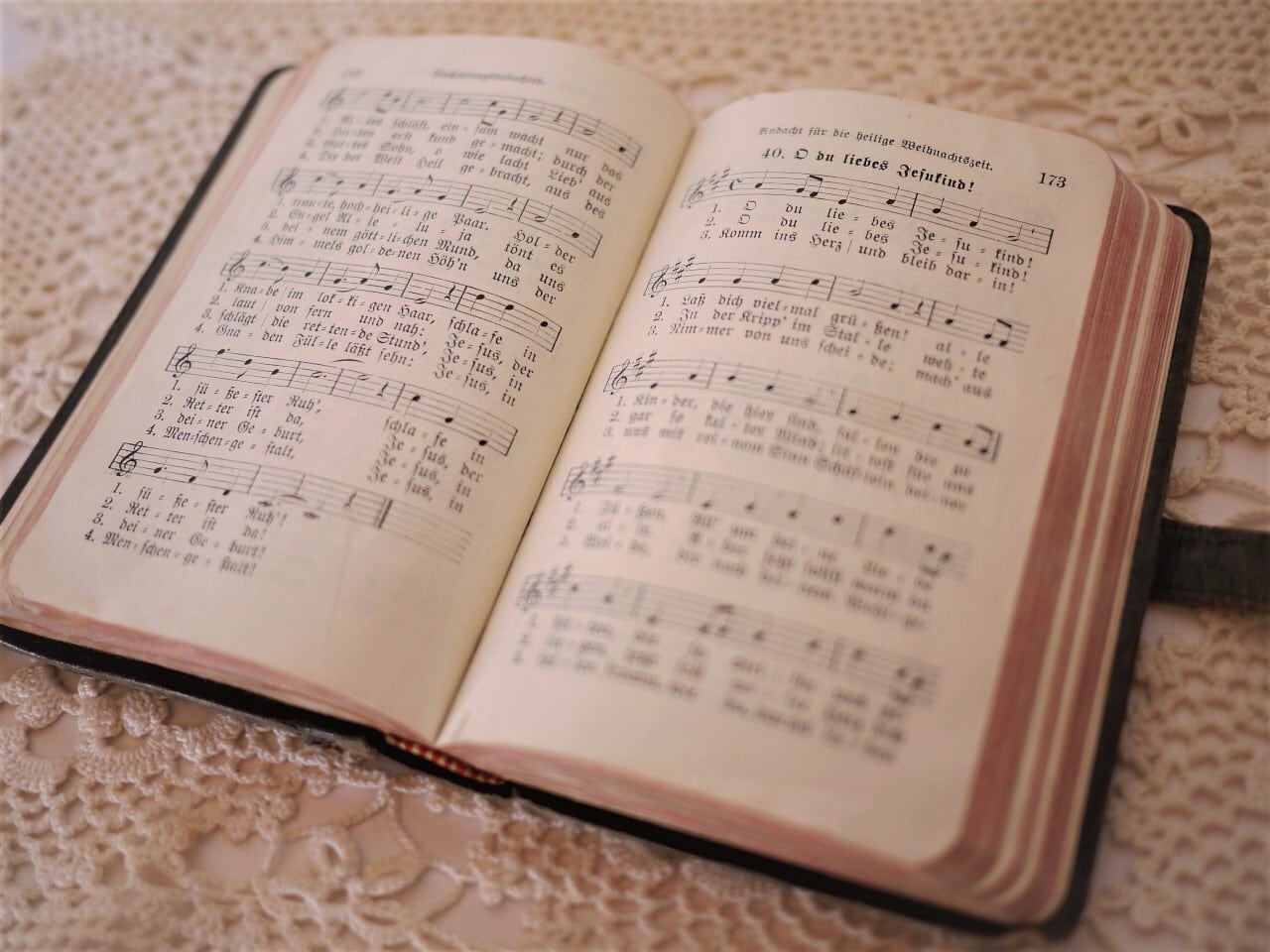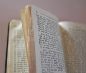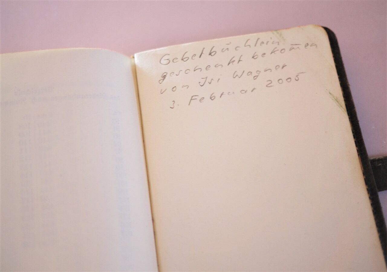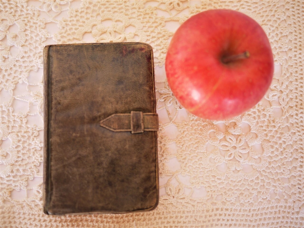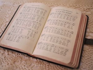 古い革製の祈祷書、讃美歌が一緒になっています。