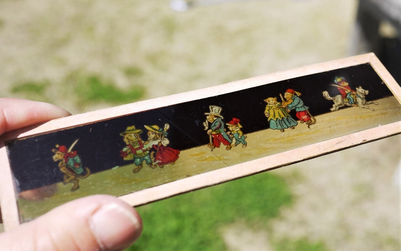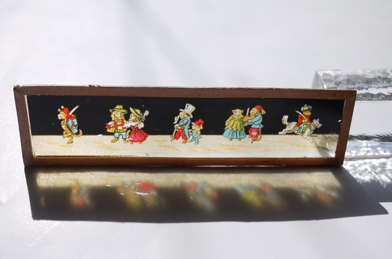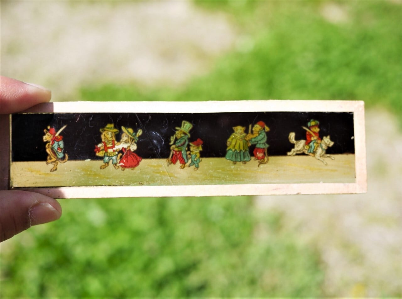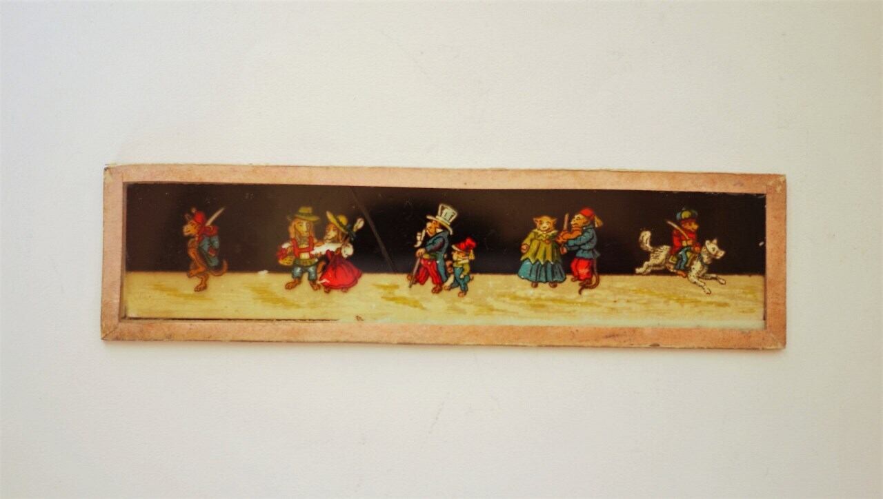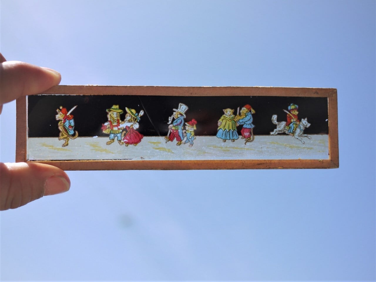 幻灯機マジックランタンのガラス絵 仮装する動物
