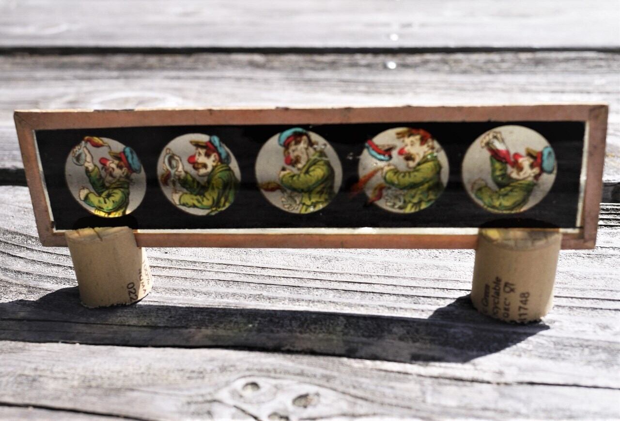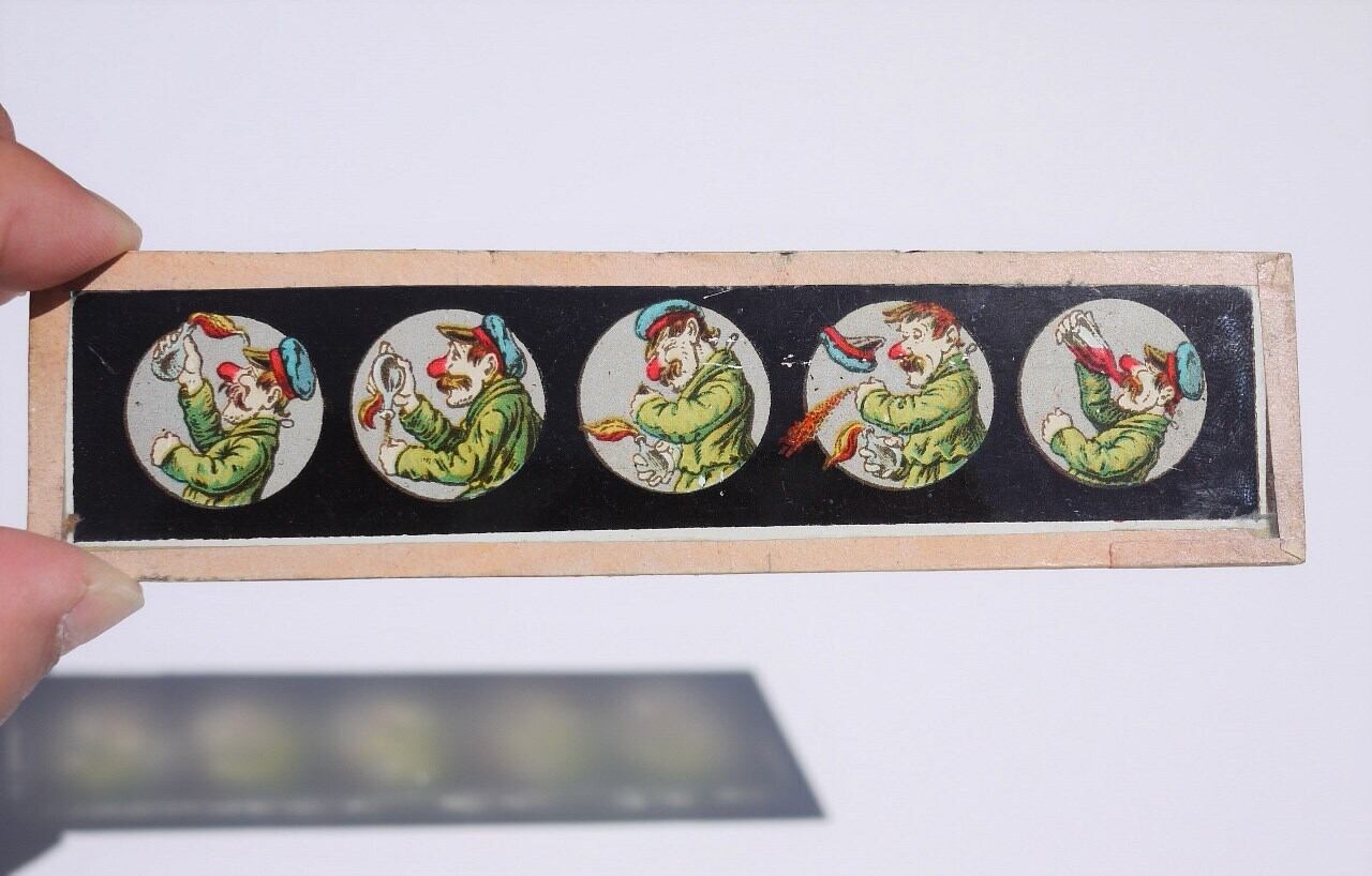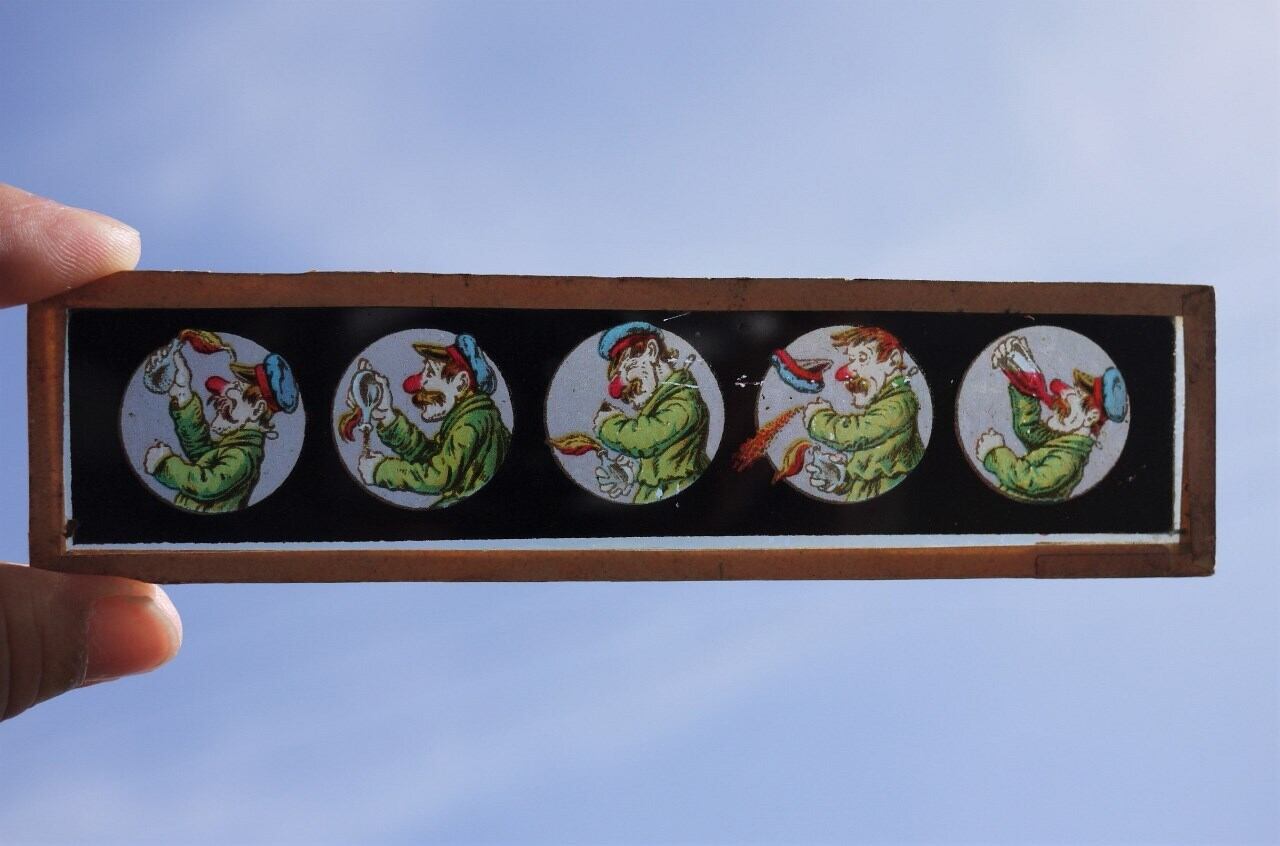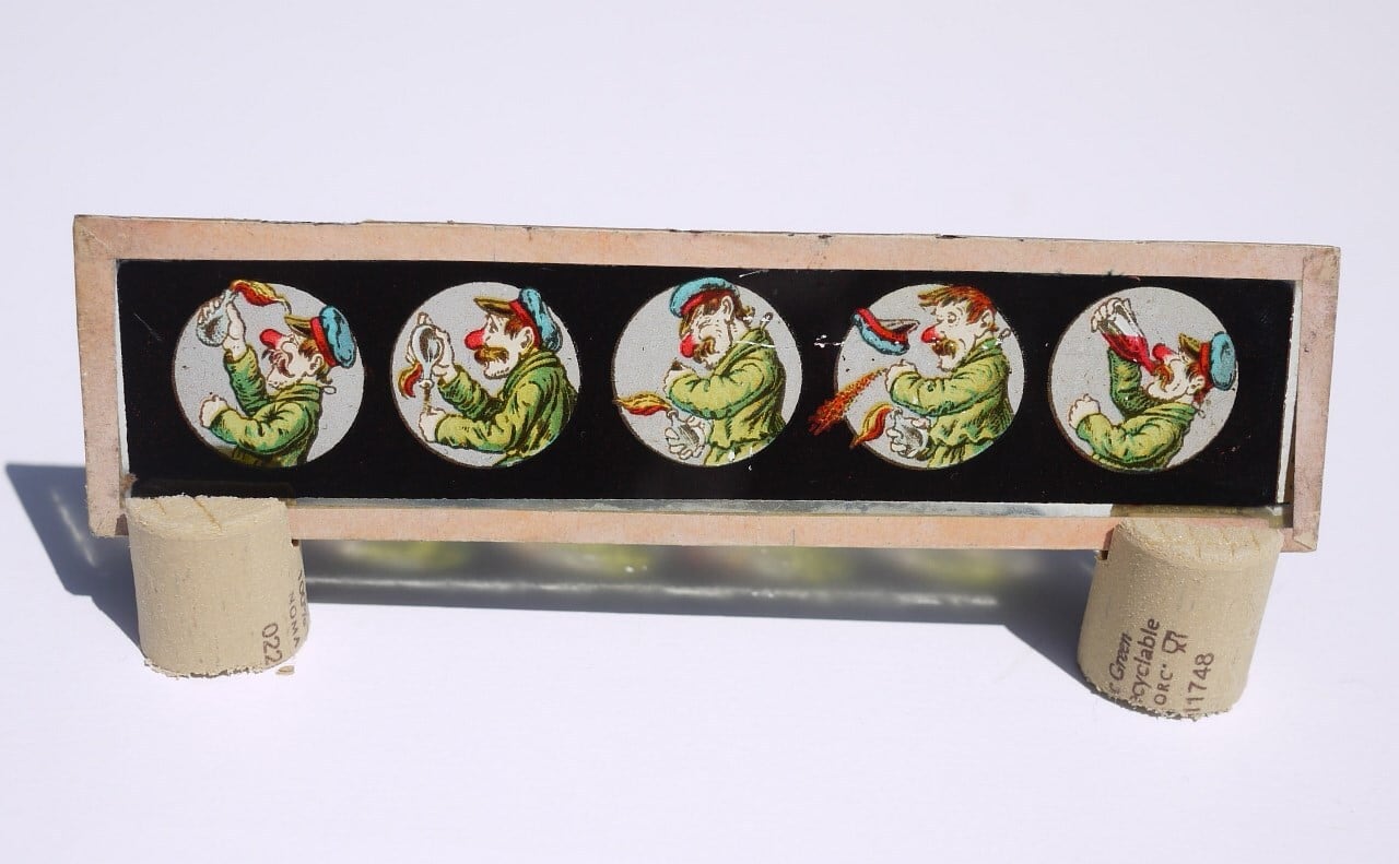 幻灯機マジックランタンのガラス絵 ワインとおじさん