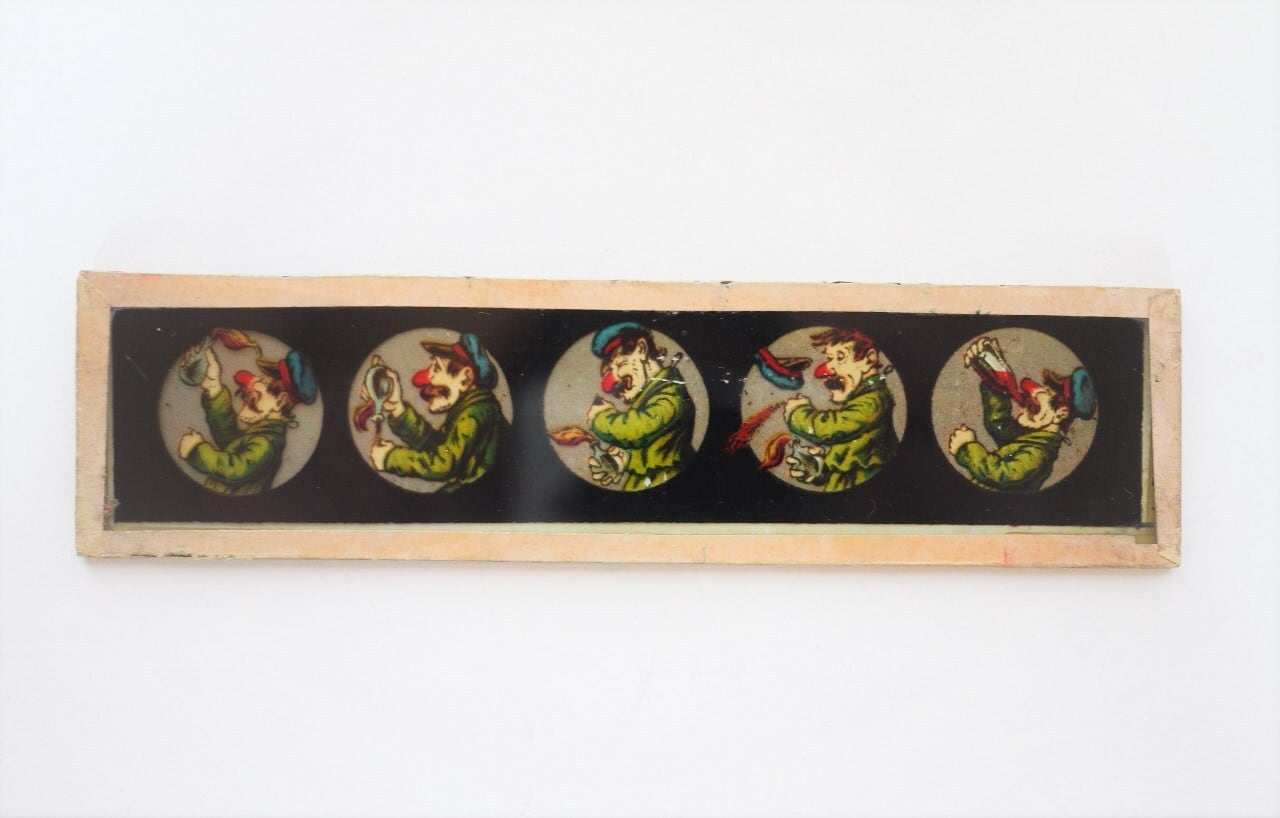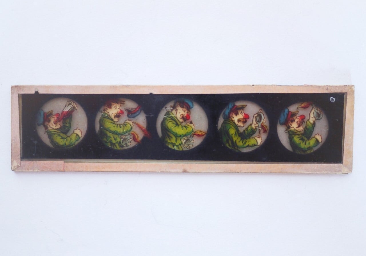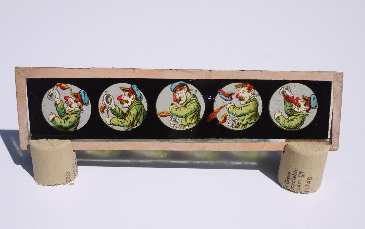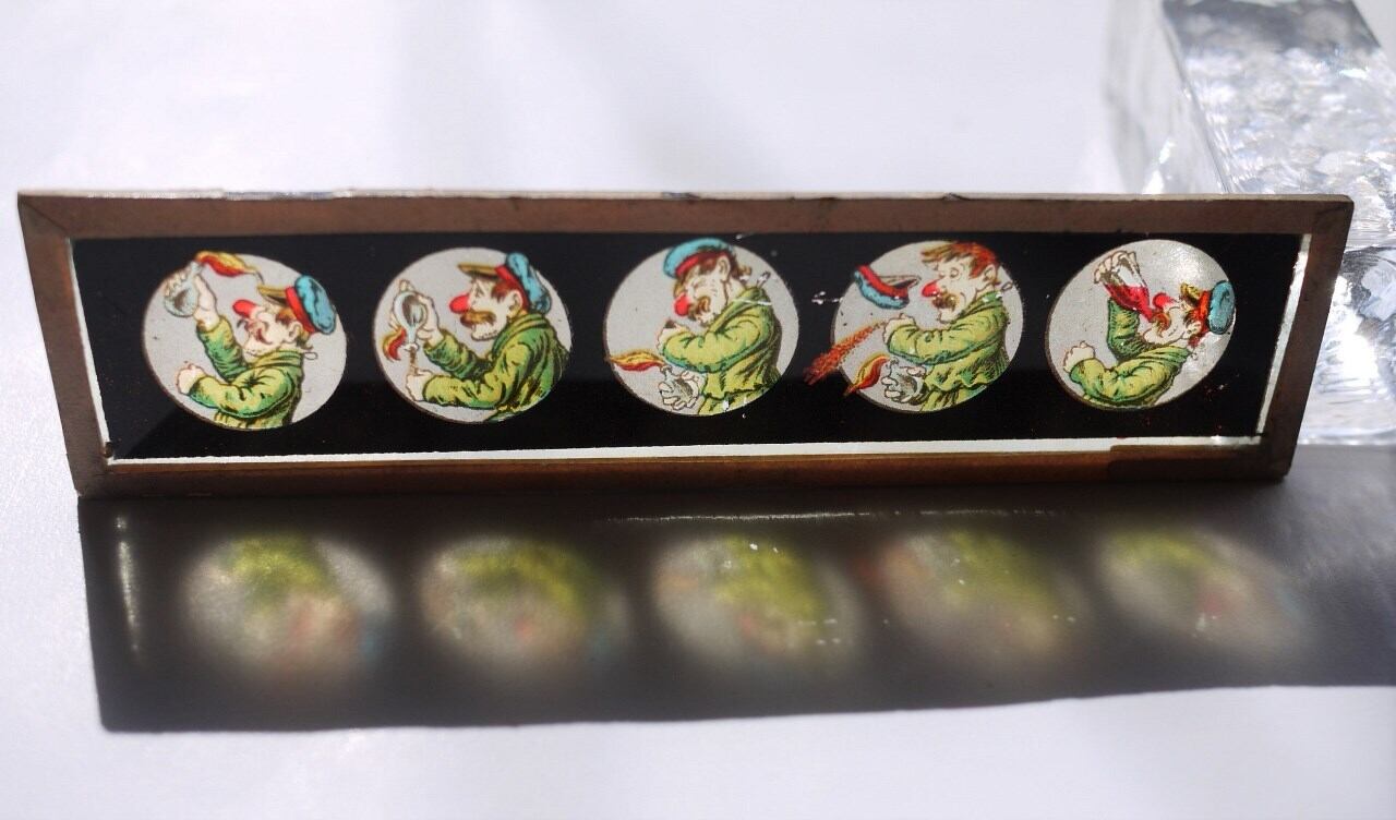 幻灯機マジックランタンのガラス絵 ワインとおじさん
